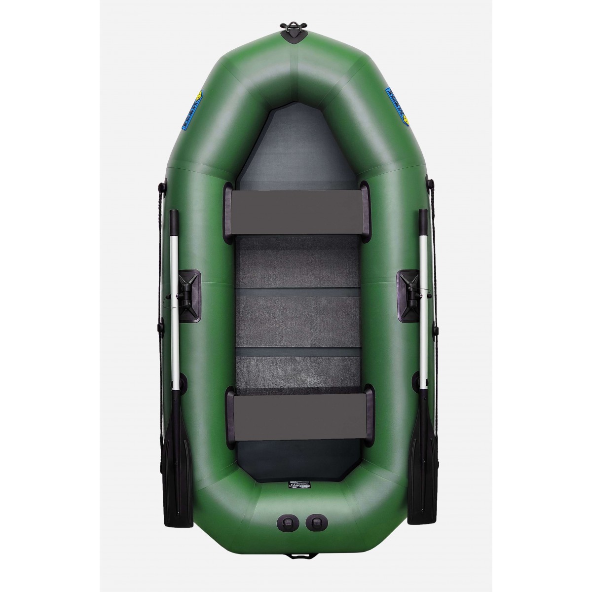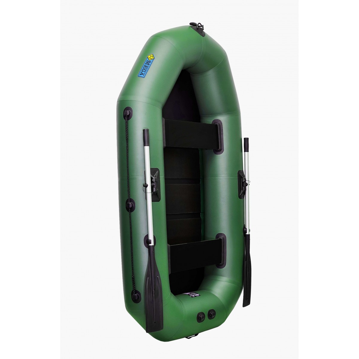 Гребная лодка с вращающимися (анкерами уключины), складными алюминиевыми веслами и сланевым полом.Основные характеристики Лодка Омега 245LS