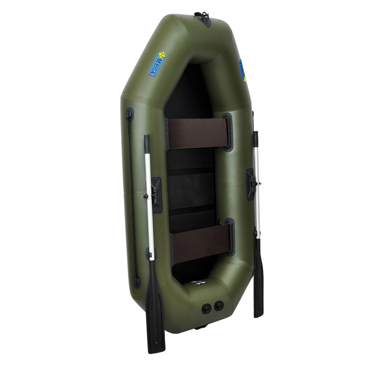 Гребная лодка с вращающимися (анкерами уключины), складными алюминиевыми веслами и сланевым полом.Основные характеристики Лодка Омега 250LS