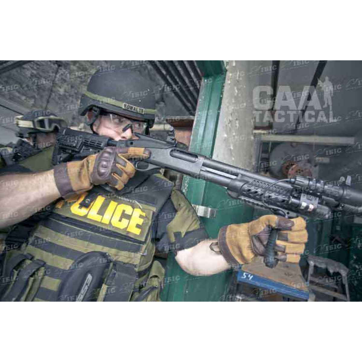 CAA Integrated Pistol Grip,Upper Picatinny Rail,Buffer Tube & Collapsible Butt Stock – шестипозиционный выдвижной приклад, позволяющий подогнать оружие под индивидуальные особенности телосложения стрелка. Кроме того, в сложенном состоянии сокращает общий размер оружия, делая его более мобильным и транспортабельным. Интегрированная планка Picatinny позволяет установить на ружье любой современный коллиматорный прицел, на соответствующем креплении.Модель специально предназначена для гладкоствольных помповых ружей линейки Remington 870, превращая их в идеальное оружие самообороны.Приклад, в случае необходимости, можно доукомплектовать держателем патронов CAA 12 Gauge Shotgun Shell Holder либо одной из фирменных «щек». Дальнейшее усовершенствование ружья, возможно путем установки цевья CAA 3 Picatinny Hand Guard Rails System с тремя планками Picatinny, под подствольный фонарь и тактическую рукоять.Материалы: приклад – ударопрочный пластик; трубка – алюминий..