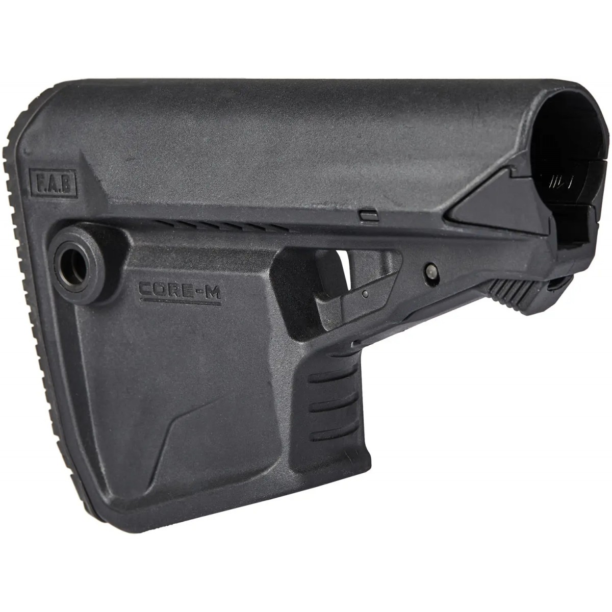 Приклад FAB Defense GL-CORE-M со встроенным отсеком для запасного магазина отличается эргономичным дизайном и малым весом. Модель ориентирована на трубы Mil-Spec, Commercial. Приклад GL-CORE-M изготовлен из полимерного композита, дополнительно армированного стекловолокном, который характеризуется высокой прочностью и износостойкостью. Благодаря специальному покрытию, приклад обладает низкой теплопроводностью, дольше сохраняя тепло даже при минусовых температурах. Кнопка регулировки длины утоплена вовнутрь во избежание самопроизвольного нажатия. В прикладе предусмотрен встроенный отсек для магазина.
