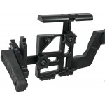 - Регулировка длины приклада и высоты подщечника производятся без использования инструментов. Подщечник выполнен из материала Delrin с малой теплоемкостью, а мягкий затыльник имеет как регулируемую высоту, так и регулируемый угол поворота относительно оси приклада.