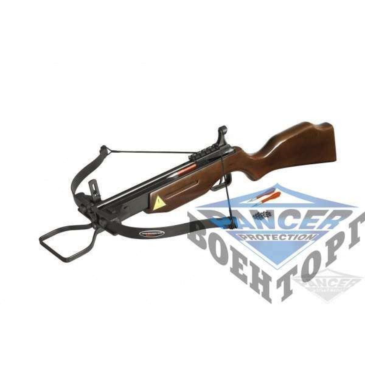 Арбалет оснащен прикладом и съемными стальными рекурсивными плечами. Направляющая, плечи и колодка арбалета изготовлены из высококачественной стали. Колодка - это деталь, которая соединяет плечи с ложем арбалета. Ее наличие позволяет легко разбирать и транспортировать арбалет, иметь одно ложе и несколько сменных плечей, различной силы натяжения к нему. Арбалет нельзя назвать совсем уж легким. Все это следствие мощной рамы и красивого деревянного приклада анатомической формы. Для удобства заряжания 20кг арбалета, эта модель оснащается специальным стременем, при помощи которого арбалет легко удерживается ногой. Арбалет укомплектован открытым прицелом и автоматическим предохранителем, который устанавливается сразу после натяжения тетивы. Точности способствует немалый вес арбалета и приклад анатомической формы. На арбалет предусматривается установка различных оптических приборов(оптический, коллиматорный либо ночной прицелы), которые Вы можете приобрести в нашем магазине. Стильный современный дизайн, передовая конструкция, все это упрощает обслуживание и напрямую влияет на качество стрельбы. Подводя итог можно сказать, что Арбалет TDR-2012 M – это прочная, надежная, неприхотливая и долговечная конструкция которая даст возможность почувствовать себя стрелком и охотником. Арбалет идеален для развлекательной стрельбы и комплектации тиров. Характеристики: aaaaОтзывы о Арбалет - 2012M