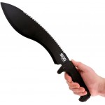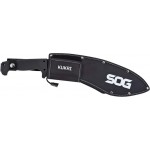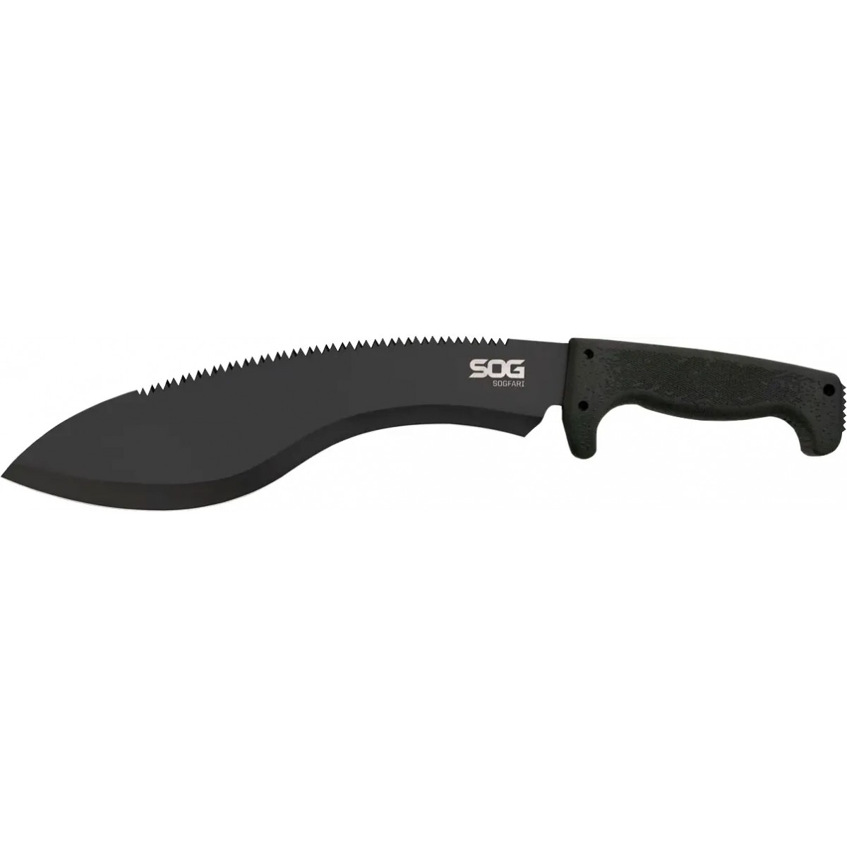 Мачете SOG SOGfari Kukri Machete — многофункциональный инструмент для любителй бушкрафта. Клинок традиционной формы выполнен из нержавеющей стали марки 3CR13 из защитным пудровым покрытием черного цвета и имеет обух в виде пилы. Рукоять выполнена из термопластического эластомера Kraton с ярко выраженной подпальцевой выемкой и гардой, что препятствует сползанию руки на режущую кромку инструмента. Рукоять оснащена стеклобоем и имеет отверстие для темляка.Мачете SOG SOGfari Kukri Machete комплектуется чехлом из износостойкого нейлона.