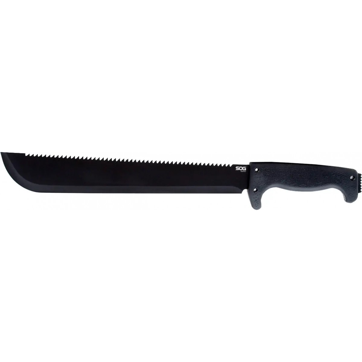 Мачете SOG SOGfari Machete — многофункциональный инструмент, с помощью которого можно расчищать дорогу через заросли, прокладывать тропы, рубить дрова и ветки, строить укрытие, охотиться и защищаться в диких условиях. Массивный клинок классической формы выполнен из нержавеющей стали 3CR13 с защитным черным пудровым покрытием, и имеет обух в виде пилы. Расширение клинка к концу смещает баланс и увеличивает силу рубящего удара.Рукоять выполнена из термопластического эластомера Kraton с ярко выраженной подпальцевой выемкой и гардой, что препятствует сползанию руки на режущую кромку инструмента.Рукоять оснащена стеклобоем и имеет отверстие для темляка. Мачете SOG SOGfari Machete комплектуется чехлом из износостойкого нейлона.