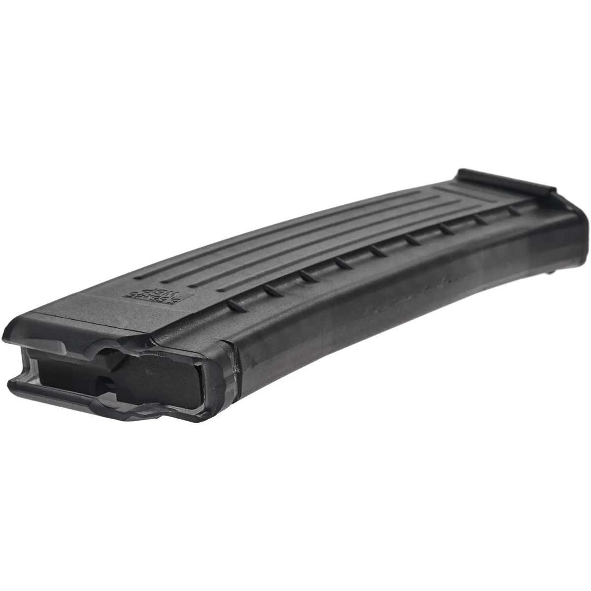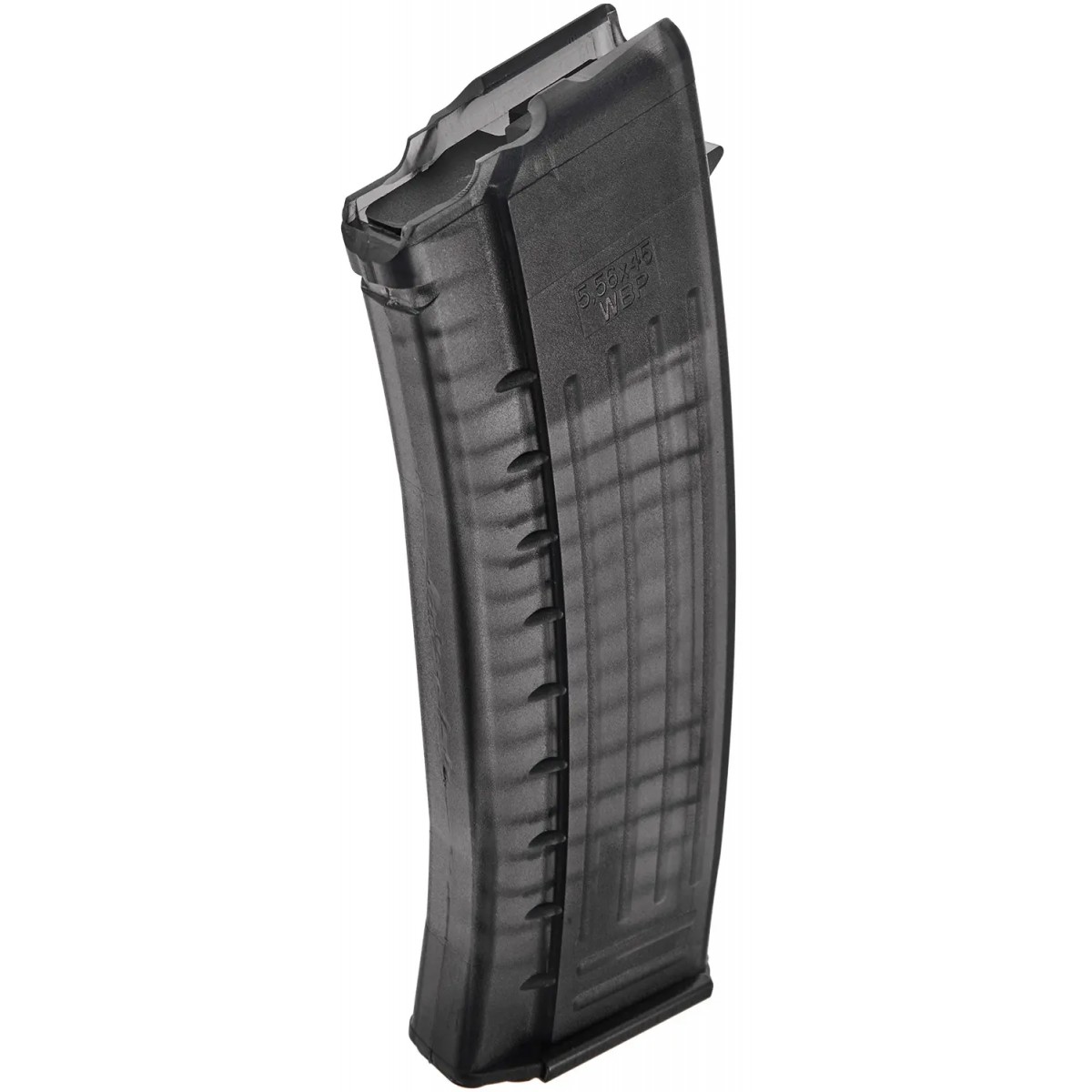 Магазин WBP для карабинов на платформе АК рассчитан на 30 патронов кал. 223 Rem/5,56x45 мм и имеет прочную полимерную конструкцию. Использование полимера позволяет существенно облегчить вес изделия, а его полупрозрачный корпус позволяет контролировать количество оставшихся в магазине боеприпасов. Пружина из нержавеющей стали и внутренняя геометрия предотвращают перекос патрона. Пятка магазина также стальная. Подходит для карабинов WPB Jack, Mini Jack, Beryl и Mini Beryl.