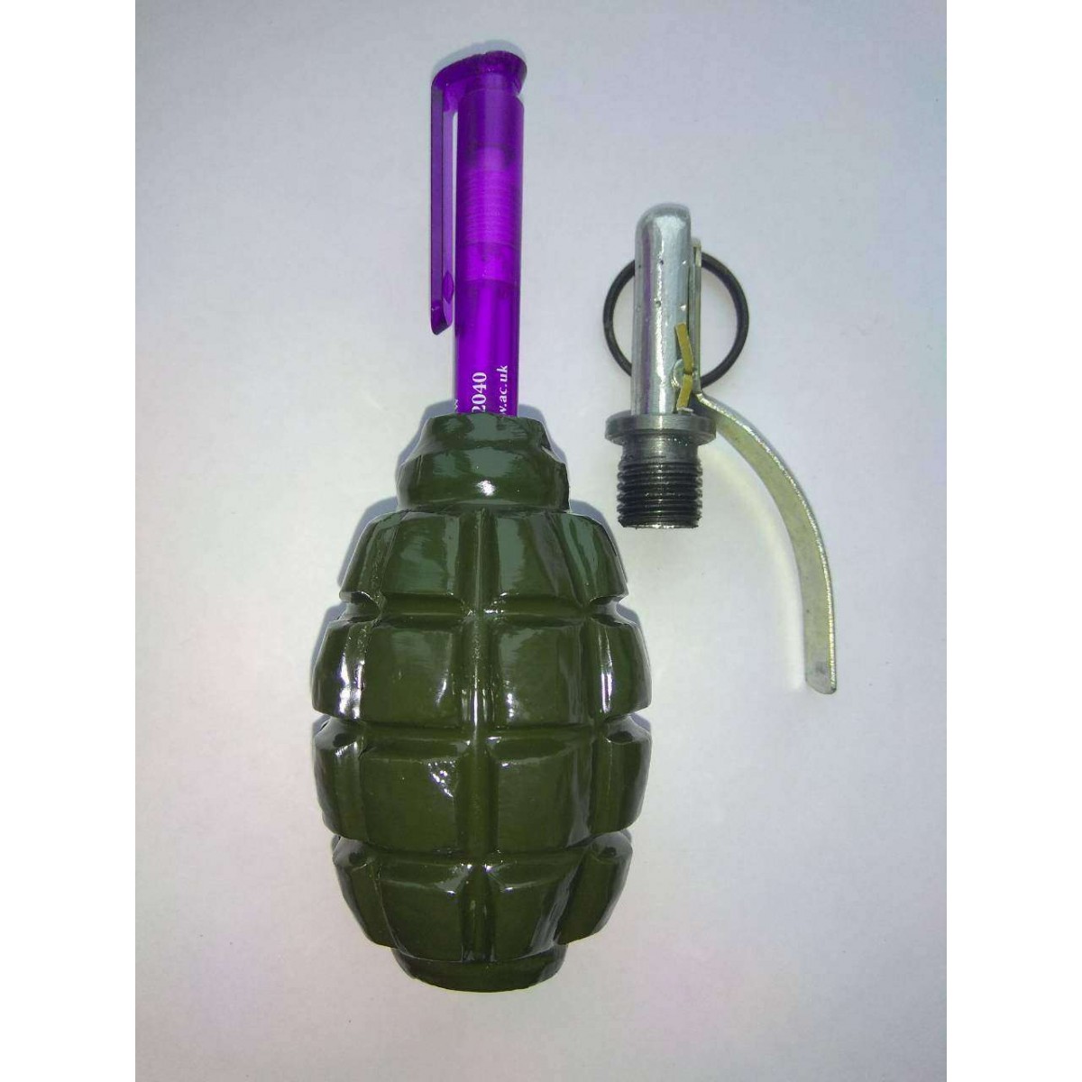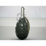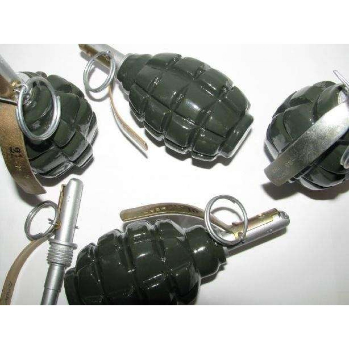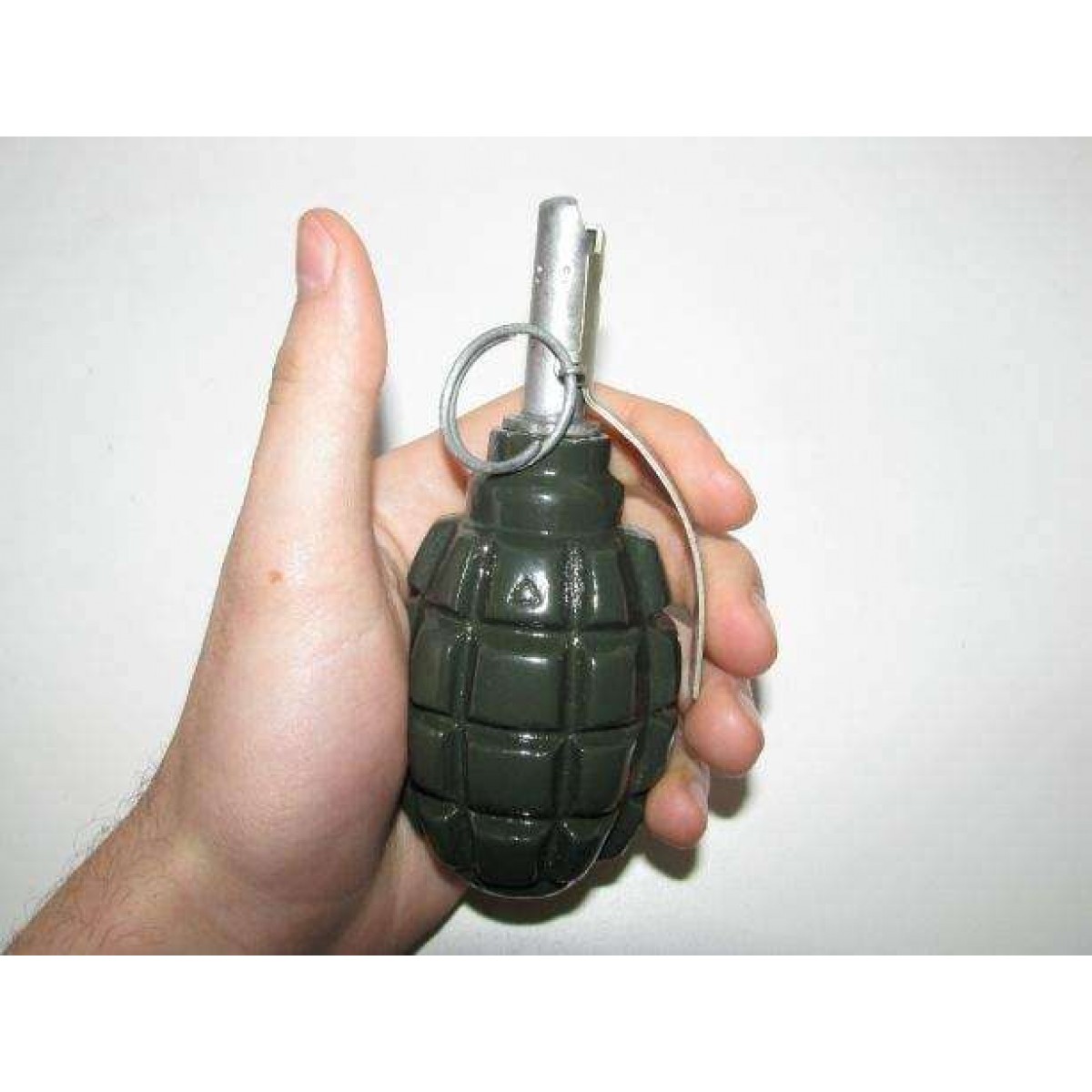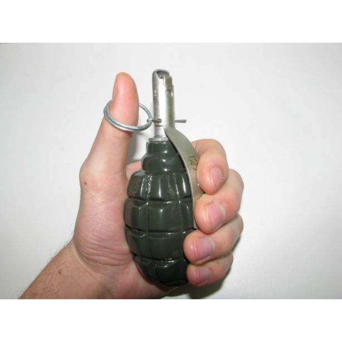 Корпус литой, сделан из сплавов металла (не чугун), немного легче настоящей гранаты. Макет - настоящей боевой гранаты Ф-1. Запал металлический, скоба отлетает.