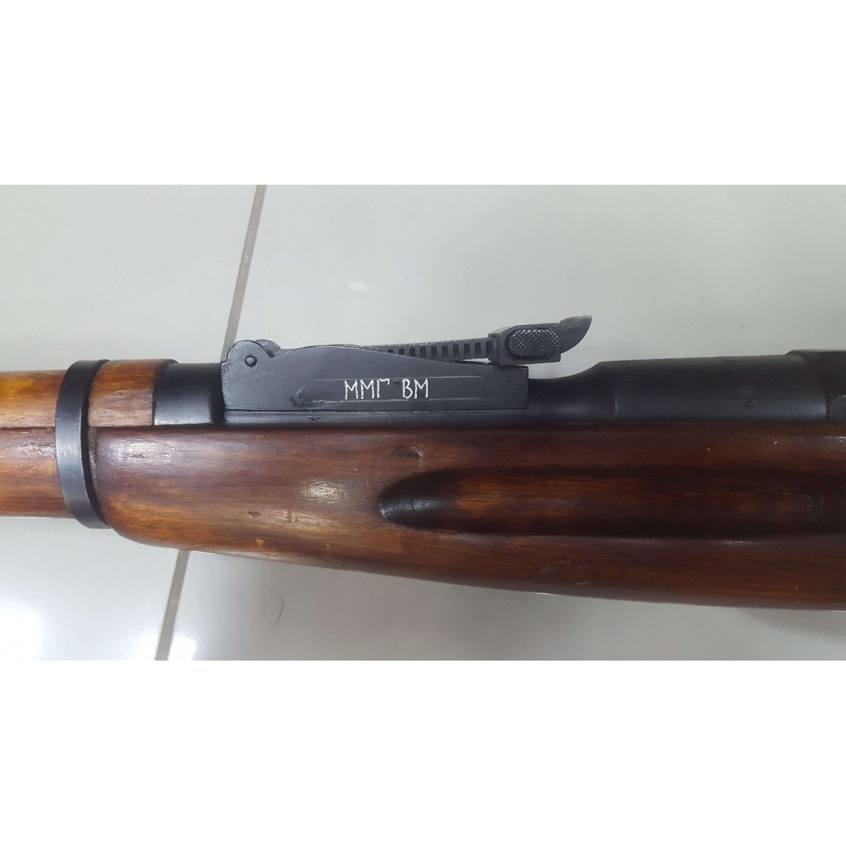 Макет винтовки Мосина является раритетом. Получен из списанной боевой винтовки Мосина образца 1891 - 1930 гг. В соответствии с законодательством РФ является списанным оружием. Ниже представлено описание массогабаритного макета винтовки Мосина, условное обозначение ММГ ВПО-912, его технические характеристики, а также сведения, необходимые для правильной эксплуатации макета винтовки. Макет винтовки Мосина, относящийся к изделиям, конструктивно сходным с оружием, предназначен для использования в качестве сувенира, выставочных образцов-имитаторов, технологических образцов-имитаторов, а также учебного пособия при изучении материальной части винтовки Мосина. Конструкция ММГ винтовки Мосина исключает возможность его использования в качестве огнестрельного оружия. Ствол макета винтовки Мосина имеет четыре просверленных отверстия снизу, что также исключает его использование в качестве огнестрельного оружия. Характеристики: - Калибр 7,62 - Тип приклада (ложи) - деревянный - Длина 1232 мм, Ширина 82 мм, Высота 186 мм - Масса - 4,0 кг - ММГ винтовки Мосина ВПО-912 в разобранном виде - Гарантия 18 месяцев