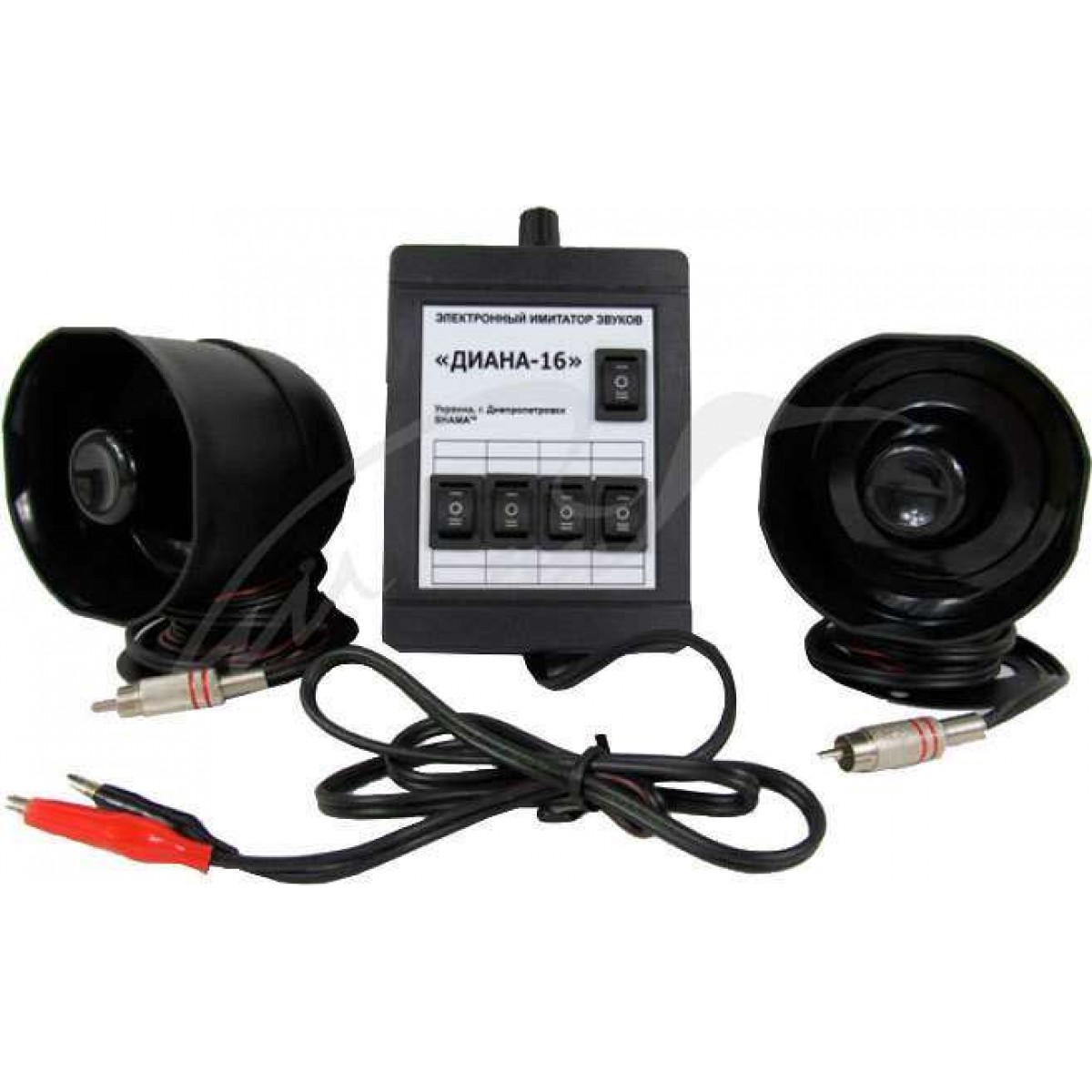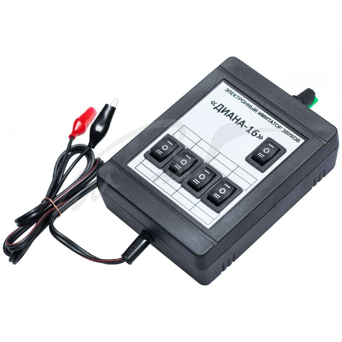 Имитатор голосов «ДИАНА-16» предназначен для приманивания или отпугивания животных. Данная модель является прогрессивной в направлении качества воспроизведения звука. В ней применен новый экономичный двухканальный усилитель «D» класса, используемый в современной звуковоспроизводящей технике, с высоким коэффициентом полезного действия, дающий возможность более экономно и длительно использовать аккумулятор внешнего питания. Достойной новизной в «ДИАНЕ-16» является одновременное применение одного или двух звукоизлучателей, а так же использование батарей питания как 6, так и 12В. Данная версия - это эконом вариант с возможностью воспроизведения 16 записей голосов животных, записанных базово или под индивидуальный заказ. Их выбор осуществляется при помощи 4-х переключателей голосов и переключателя ЧИПов, включающих в себя 16 голосов животных. В приборе использованы 3-х позиционные переключатели, разъемы, гнезда. Это упрощает и ускоряет решение вопросов со срочным ремонтом в случае их повреждения.