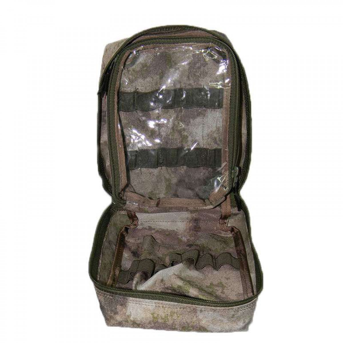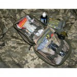 Медицинский подсумок с дополнительным съемным вкладышем с прозрачной передней панелью.Подсумок снабжен системой эластичных лент для фиксации медикаментов.Имеется дополнительный внутренний карман.С внешней стороны нашита велкро для крепления патчей.
