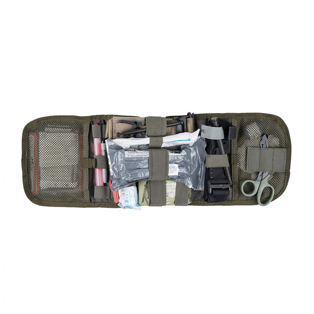Индивидуальная тактическая аптечка IFAK (Individual First Aid Kit) является стандартной частью оснащения военных NATO. Она должна содержать набор критически важных медицинских средств и инструментов, необходимых для оказания домедицинской помощи на поле боя при непосредственной угрозе жизни. Медицинский подсумок от «Баллистика» создан по аналогу аптечек NATO, однако имеет увеличенный размер и функционал. Особенности товара Аптечка позволяет оптимально организовать внутреннее пространство. Закрытая конструкция предотвращает попадание внутрь грязи и в то же время предоставляет быстрый и удобный доступ к содержимому даже в условиях сильного стресса. К другим свойствам изделия относятся следующие: Состоит из двух частей: муфты и выдвижного модуля, который держится внутри в свернутом состоянии. Модуль можно достать как слева, так и справа. Для этого нужно дернуть одну из строп, которые пришиты к модулю по бокам, за шнурок с удобным пластиковым наконечником в виде якоря. Боковые отверстия муфты закрываются клапанами с двумя велкро-полосками, между которыми и проходит упомянутая стропа. Она при этом также крепится к клапану на липучку. Муфта имеет пластиковую основу из двух отдельных пластин, которые помогают ей держать форму. Отсеки, в которые они помещаются, застегиваются на велкро, так что при желании пластик можно вынуть и использовать их как обычные карманы. Благодаря жесткому каркасу и скользящей ткани модуль легко вынимается, даже если подсумок размещен на спине и модуль приходится вытягивать из-под себя. Глубокий внешний карман замыкается на молнию. Через него можно добраться до одного из отсеков для пластиковой вставки. Муфта шнуруется к снаряжению на систему MOLLE. Снаружи спереди на ней также нашиты ячейки, в том числе с липучкой, на которые можно зафиксировать другие подсумки. Один ряд ячеек помещен на верхней грани муфты. Через него можно продеть шнурок для закрепления дополнительных аксессуаров, которые должны быть под рукой. Модуль для надежности привязан к муфте на эластичный спиральный шнурок, длина которого в растянутом виде составляет ~1,5 м. На противоположных концах внутри модуля помещены два сетчатых кармана на липучке (17×13 и 17×10 см), оснащенные язычками для удобного открытия. Пространство между ними занимают многочисленные эластичные петли для фиксации медицинских средств, а также один открытый карман (17×17 см). К верхнему краю пришит небольшой (8×5 см) жесткий клапан с липучкой, которым модуль, собственно, и застегивается. Кроме того, за него развернутый модуль можно прилепить к велкро-панели на плитоноске и получить доступ сразу ко всему наполнению. С обратной стороны на клапане нашиты две эластичные ленты, разделенные швами на шесть отрезков, куда также можно воткнуть небольшой инвентарь. Все края подсумка окантованы тесьмой, которая предотвращает их растрепывание и способствует долговечности изделия. Технические характеристики Внешний материал: Nylon 500D или Cordura 500D. Внутренний материал: Oxford 340D, 2D-сетка. Фурнитура: молния (YKK), эластичные ленты, резинка-спираль («Фастекс.юа»), латунные люверсы, наконечники «Якорь», паракордовые шнурки. Липучка: Velcro. Размеры муфты: 20×20×9 см. Размеры выдвижного элемента (в развернутом виде): 20×57 см. Вес: 428 г. Внутренний объем: 3,05 л.Отзывы о Подсумок для аптечки IFAK "Алатырь" (ММ-14 "Пиксель") ТМ Б