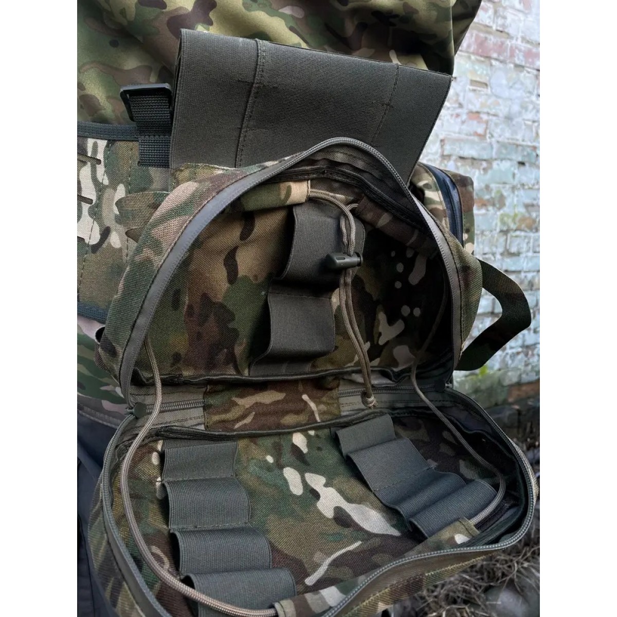 Тактический подсумок от бренда uaBRONIK является идеальным решением для оказания первой медицинской помощи. Этот подсумок состоит из двух частей: сумки с внутренним органайзером для индивидуальной аптечки первой помощи и базы, которая крепится к снаряжению и служит основой сумки.