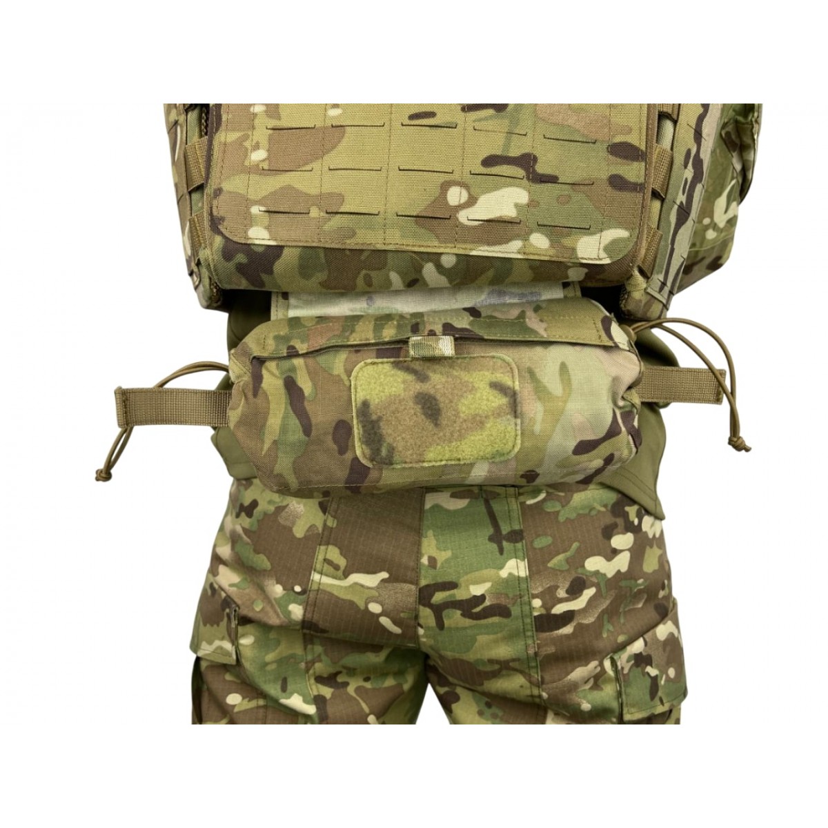Крепление производится по системе MOLLE, что позволяет надёжно закрепить подсумок на плитоносце, поясе или разгрузочной системе. Компактные размеры и горизонтальная ориентация не мешают передвижению и не ограничивают доступ к другим элементам снаряжения.
