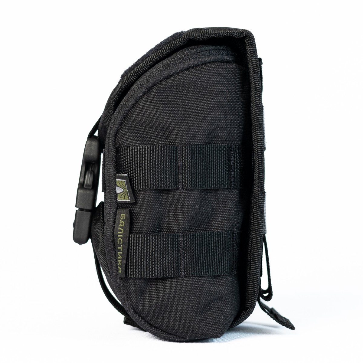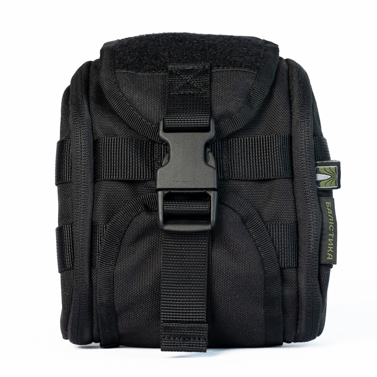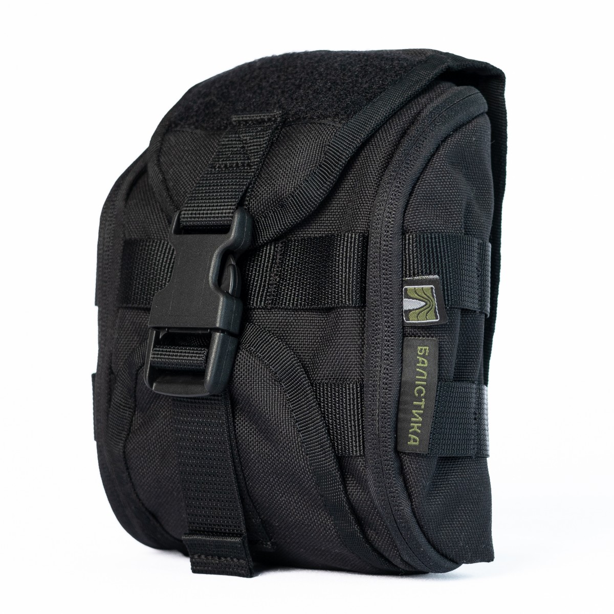 Своевременный и удобный доступ к аптечке спасает жизнь и здоровье при ранениях на поле боя. Медицинский подсумок, разработанный «Баллистикой», состоит собственно из подсумка и фиксационной платформы. Он имеет продуманную организацию внутреннего пространства и подойдет для комплектования тактической аптечки. Особенности подсумка под аптечку ПА1 – это современный подсумок для размещения необходимого индивидуального комплекта медицины по современным стандартам стран NATO. Он имеет следующие отличительные признаки: Изготовлен из прочного материала, который защищает от стихии, механических повреждений и быстрого износа. Сочетает компактность и при этом достаточную вместительность. Пример комплектации проиллюстрирован на фото, набор медикаментов не входит в стоимость подсумка. Внутреннее пространство подсумка выполнено в виде органайзера благодаря двум внутренним карманам, круглой резинке, эластичной ленте, которая разделена на фиксационные ячейки. Эти элементы позволяют удобно расположить и надежно закрепить необходимые медицинские средства. Благодаря широкому раскрытию почти все содержимое аптечки сразу попадает под руку, что, безусловно, очень важно при оказании первой неотложной помощи. Имеет систему быстрого съема и посадки на место. Фиксационная платформа пришнуровывается к снаряжению на систему MOLLE, а подсумок к платформе крепится на велкро-липучку и застегивается фастексом. Поэтому его можно снять несколькими простыми движениями, положить перед собой или передать кому-то другому. На передней и боковых частях аптечки также помещены ячейки MOLLE, что позволяет дополнительно разместить снаружи другие подсумки или вставить ножницы. Подсумок можно носить как на платформе, так и без нее, причем для его крепления на систему MOLLE используется та же стропа, что идет на шнуровку платформы. Технические характеристики Размер в сложенном состоянии: 16×16×7 см. Вес: 240 г. Материал внешней ткани: нейлон (Cordura 1000D). Материал внутренних карманов: полиэстер Oxford. Стропа: нейлон. Липучка: Velcro (Alfatex).Отзывы о Подсумок под аптечку ПА1 (Черный)