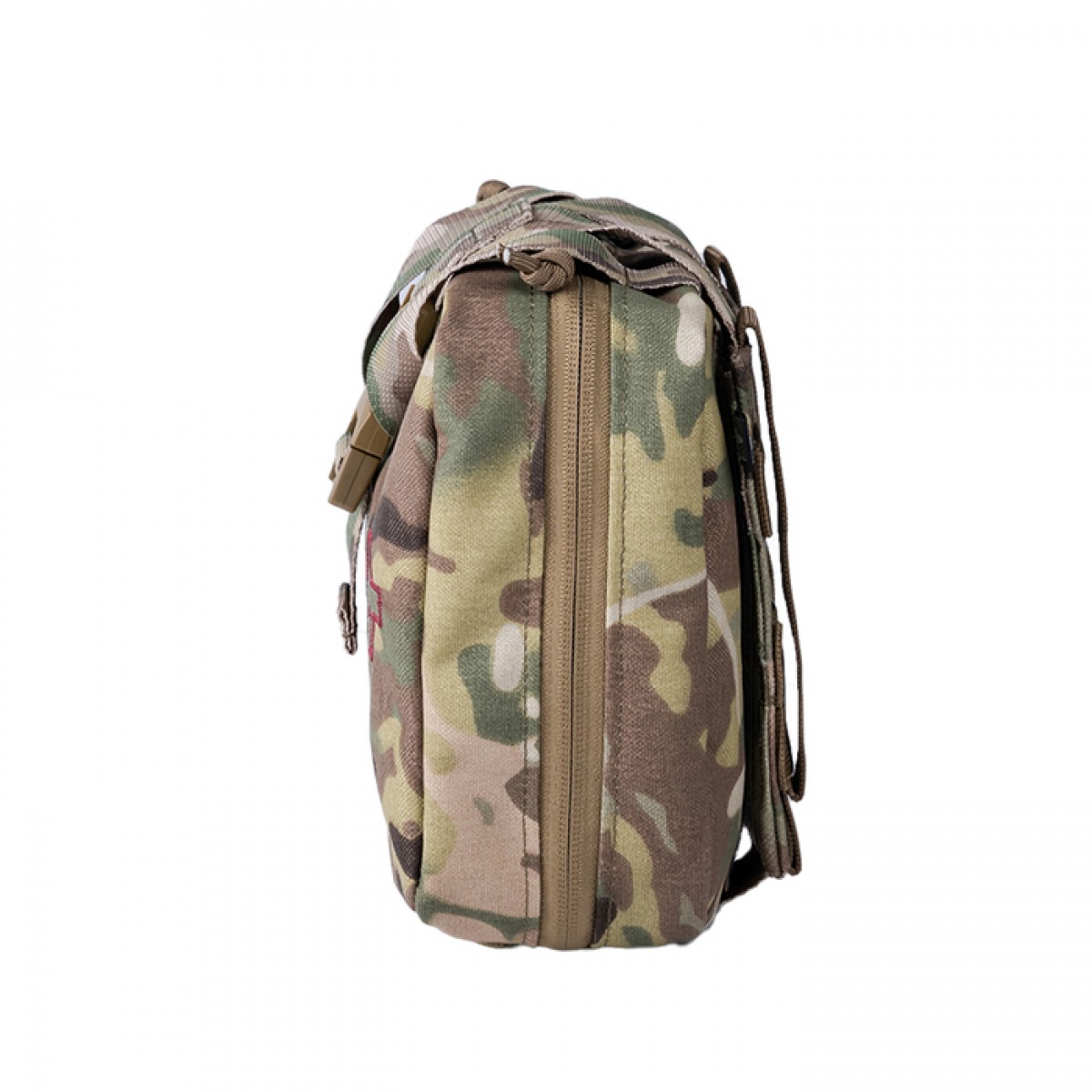 Подсумок рассчитан под стандартный набор медикаментов, аналогичный натовским аптечкам IFAK, которые соответствуют протоколам оказания помощи на поле боя M.A.R.C.H./TCCC. ПА2 вместительный и удобно организованный, что позволяет быстро достать все необходимые средства для домедицинской помощи на поле боя. ✅ Ключевые преимущества Вмещает полноценный набор IFAK по протоколу TCCC (формат MARCH) Жесткая платформа на молли + підсумок на велкро Дополнительная фиксация підсумка стропой с фастексом Подсумок можно быстро отсоединить от платформы для автономного использования Молния со скоростными раскрывателями Карманы и эластичные фиксаторы для закрепления медикаментов в удобном порядке Внешние крепления для турникета, ножниц, карточки пострадавшего Можно использовать непосредственно на снаряжении или отдельно Описание товара Размер Regular позволяет переносить некоторые самые необходимые медикаменты в двойном количестве (например, бандаж или бинт-гемостатик). При этом подсумок занимает такую же площадь на снаряжении, как и размер Slim, но толще по профилю. Подсумок можно расстегнуть и получить доступ к содержимому непосредственно на снаряжении или отсоединить его и использовать отдельно. ПА2 крепится к фиксационной платформе на липучку велкро и дополнительно закрепляется стропой с фастексом. Платформа шнуруется к плитоноске или РПС с помощью системы MOLLE. Платформа занимает 3 ячейки в ширину, но с объемом подсумка стоит рассчитывать на 4 занятые ячейки на вашем снаряжении. В платформе скрыт дополнительный карман (10,5×16 см) под атравматические ножницы и карточку пострадавшего формата А6. Подсумок оборудован молнией с двумя бегунками и скоростными раскрывателями. Они позволяют за доли секунды раскрыть его пополам и получить доступ ко всему содержимому одновременно. На каждой половине есть отдельный карман (16×15 см) под объемные плоские медицинские средства, такие как окклюзионная наклейка. Снаружи на этих карманах размещены эластичные фиксаторы, в частности под турникет, бандаж, гемостатический и обычный бинты для тампонады, перевязочные пакеты, маркеры, декомпрессионную иглу, перчатки. В нижней части есть прозрачный кармашек (12×7 см) из 2D-сетки на молнии, предназначенный для мелочей, таких как пилпак, накладки на глаз и салфетки. Посередине подсумка (между его половинками) размещен эластичный фиксатор под пластырь или скотч. Снизу изделия снаружи пришит еще один фиксатор, который позволяет переносить дополнительный турникет. Подсумок оснащен ручкой из стропы для более удобной переноски. ℹ️ Медикаменты в комплект не входят. Используйте только рекомендованные протоколом ТССС средства и медикаменты – они спасают жизнь! ❓ Часто задаваемые вопросы Чем ПА2 Regular отличается от ПА2 Slim? Модели отличаются только толщиной. Slim – 6 см, а Regular – 8 см. При этом оба подсумка имеют одинаковую площадь крепления (17×17 см). Таким образом, в Regular поместится больше средств (например, дополнительный бандаж или бинт). Входят ли в комплект медицинские средства? Нет, подсумок продается пустым. Мы рекомендуем формировать его наполнение в соответствии с протоколом TCCC/MARCH. Можно ли открывать подсумок одной рукой? Да, благодаря скоростным раскрывателям на молнии подсумок легко открыть даже в стрессовых условиях. Подходит ли ПА2 для гражданского использования? Да, аптеч