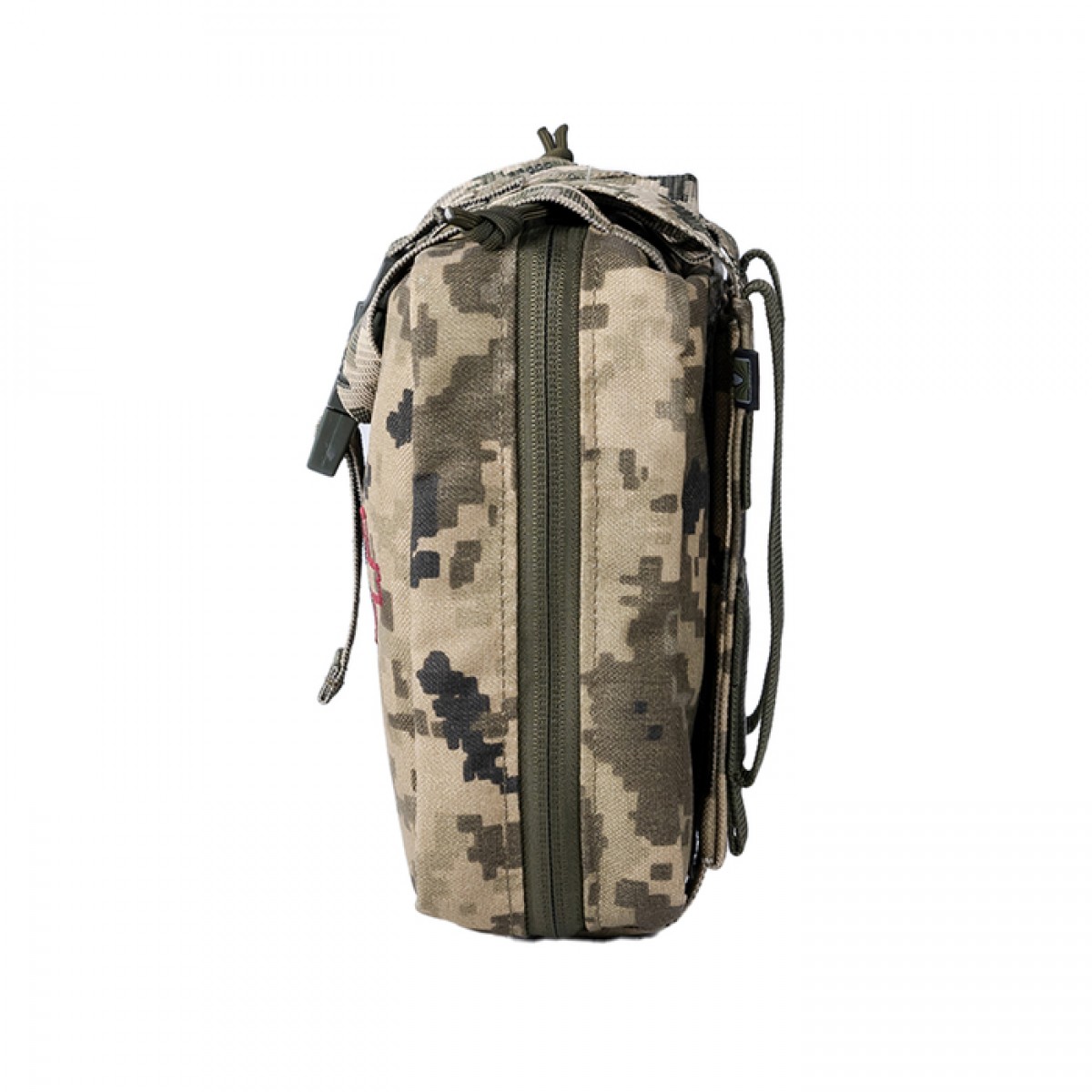 Подсумок рассчитан под стандартный набор медикаментов, аналогичный натовским аптечкам IFAK, которые соответствуют протоколам оказания помощи на поле боя M.A.R.C.H./TCCC. ПА2 вместительный и удобно организованный, что позволяет быстро достать все необходимые средства для домедицинской помощи на поле боя. ✅ Ключевые преимущества Вмещает полноценный набор IFAK по протоколу TCCC (формат MARCH) Жесткая платформа на молли + підсумок на велкро Дополнительная фиксация підсумка стропой с фастексом Подсумок можно быстро отсоединить от платформы для автономного использования Молния со скоростными раскрывателями Карманы и эластичные фиксаторы для закрепления медикаментов в удобном порядке Внешние крепления для турникета, ножниц, карточки пострадавшего Можно использовать непосредственно на снаряжении или отдельно Описание товара Размер Regular позволяет переносить некоторые самые необходимые медикаменты в двойном количестве (например, бандаж или бинт-гемостатик). При этом подсумок занимает такую же площадь на снаряжении, как и размер Slim, но толще по профилю. Подсумок можно расстегнуть и получить доступ к содержимому непосредственно на снаряжении или отсоединить его и использовать отдельно. ПА2 крепится к фиксационной платформе на липучку велкро и дополнительно закрепляется стропой с фастексом. Платформа шнуруется к плитоноске или РПС с помощью системы MOLLE. Платформа занимает 3 ячейки в ширину, но с объемом подсумка стоит рассчитывать на 4 занятые ячейки на вашем снаряжении. В платформе скрыт дополнительный карман (10,5×16 см) под атравматические ножницы и карточку пострадавшего формата А6. Подсумок оборудован молнией с двумя бегунками и скоростными раскрывателями. Они позволяют за доли секунды раскрыть его пополам и получить доступ ко всему содержимому одновременно. На каждой половине есть отдельный карман (16×15 см) под объемные плоские медицинские средства, такие как окклюзионная наклейка. Снаружи на этих карманах размещены эластичные фиксаторы, в частности под турникет, бандаж, гемостатический и обычный бинты для тампонады, перевязочные пакеты, маркеры, декомпрессионную иглу, перчатки. В нижней части есть прозрачный кармашек (12×7 см) из 2D-сетки на молнии, предназначенный для мелочей, таких как пилпак, накладки на глаз и салфетки. Посередине подсумка (между его половинками) размещен эластичный фиксатор под пластырь или скотч. Снизу изделия снаружи пришит еще один фиксатор, который позволяет переносить дополнительный турникет. Подсумок оснащен ручкой из стропы для более удобной переноски. ℹ️ Медикаменты в комплект не входят. Используйте только рекомендованные протоколом ТССС средства и медикаменты – они спасают жизнь! ❓ Часто задаваемые вопросы Чем ПА2 Regular отличается от ПА2 Slim? Модели отличаются только толщиной. Slim – 6 см, а Regular – 8 см. При этом оба подсумка имеют одинаковую площадь крепления (17×17 см). Таким образом, в Regular поместится больше средств (например, дополнительный бандаж или бинт). Входят ли в комплект медицинские средства? Нет, подсумок продается пустым. Мы рекомендуем формировать его наполнение в соответствии с протоколом TCCC/MARCH. Можно ли открывать подсумок одной рукой? Да, благодаря скоростным раскрывателям на молнии подсумок легко открыть даже в стрессовых условиях. Подходит ли ПА2 для гражданского использования? Да, аптеч