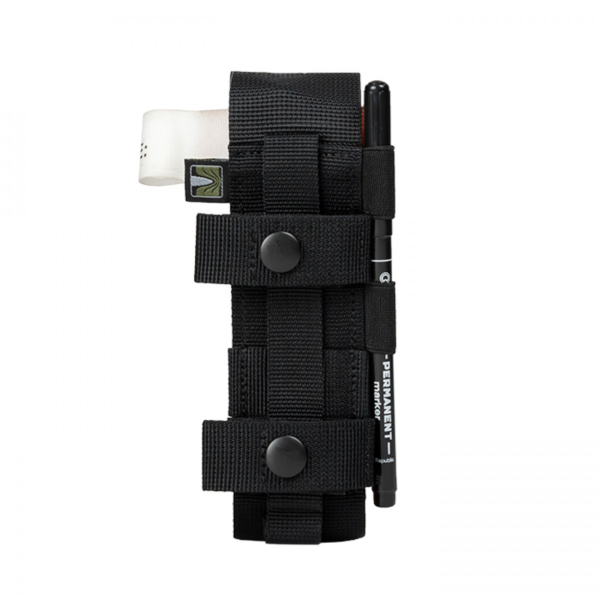 От быстрого доступа к турникету буквально зависит жизнь воина. «Баллистика» разработала качественный и практичный турникетный подсумок и позаботилась о его максимальном удобстве. Особенности товара Подсумок почти полностью закрывает турникет, однако его конструкцией предусмотрены боковые отверстия сверху и снизу. На клапане, которым он закрывается, вышита буква «Т», чтобы точно не спутать с подсумками другого назначения. К другим отличительным признакам этого изделия относятся следующие: Длинный клапан (14,5 см) на липучке можно приспособить к длине турникета благодаря регулируемой фиксации. Язычок на конце клапана облегчает открывание, и это можно сделать одной рукой. Боковины изделия изготовлены из эластичного материала, что позволяет ему адаптироваться к объему содержимого. Задняя стенка усилена двойным слоем прочной ткани, что помогает ей держать форму. Подсумок крепится к снаряжению на одну стропу системы MOLLE. При этом удлиненные свободные концы двух ячеек могут служить креплениями для ножниц и фиксируются липучкой и кнопкой. За хлястики с кнопкой изделие также можно вешать на ремень в горизонтальном положении. Сбоку помещены две резинки для маркера, которым указывается время установки турникета. Благодаря узкому и компактному дизайну можно прикрепить сразу несколько таких подсумков там, где не поместятся другие. Это позволит всегда иметь под рукой необходимое количество турникетов. Технические характеристики Ременная стропа: полиамид, 2; 2,5; 5 см. Фурнитура: латунные кнопки. Липучка: Velcro. Размеры закрытого подсумка: 5×16 см. Вес: 70 г.Отзывы о Подсумок под турникет закрытый gen. 2.0 (Черный)