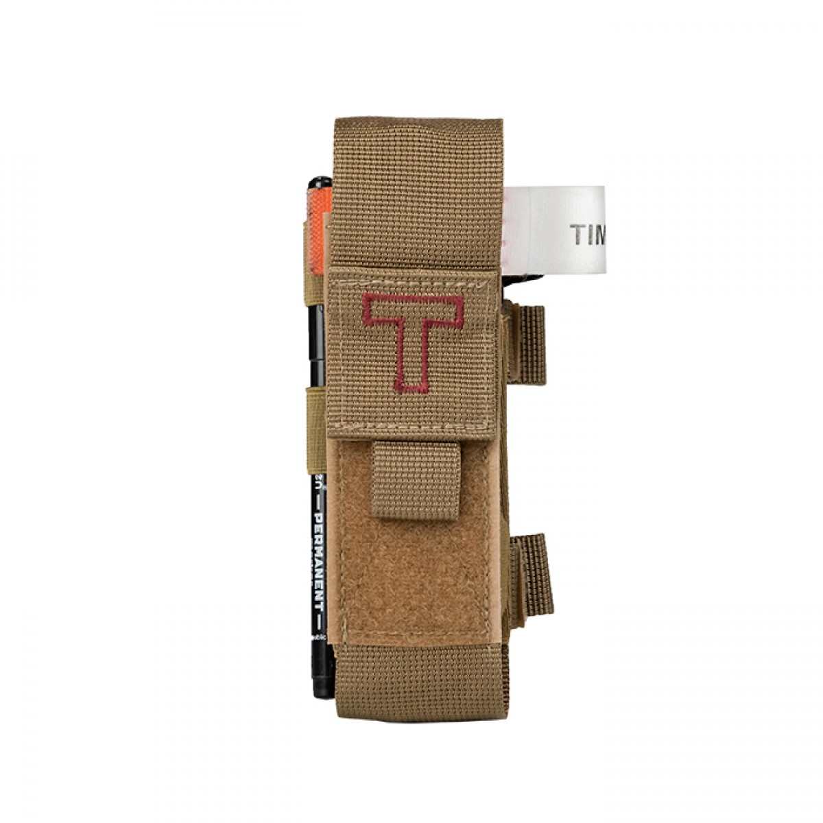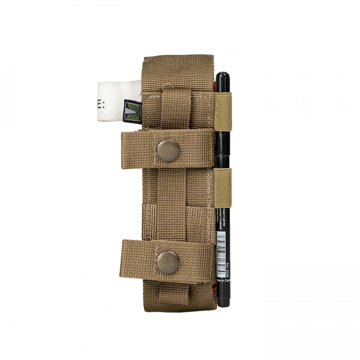 От быстрого доступа к турникету буквально зависит жизнь воина. «Баллистика» разработала качественный и практичный турникетный подсумок и позаботилась о его максимальном удобстве. Особенности товара Подсумок почти полностью закрывает турникет, однако его конструкцией предусмотрены боковые отверстия сверху и снизу. На клапане, которым он закрывается, вышита буква «Т», чтобы точно не спутать с подсумками другого назначения. К другим отличительным признакам этого изделия относятся следующие: Длинный клапан (14,5 см) на липучке можно приспособить к длине турникета благодаря регулируемой фиксации. Язычок на конце клапана облегчает открывание, и это можно сделать одной рукой. Боковины изделия изготовлены из эластичного материала, что позволяет ему адаптироваться к объему содержимого. Задняя стенка усилена двойным слоем прочной ткани, что помогает ей держать форму. Подсумок крепится к снаряжению на одну стропу системы MOLLE. При этом удлиненные свободные концы двух ячеек могут служить креплениями для ножниц и фиксируются липучкой и кнопкой. За хлястики с кнопкой изделие также можно вешать на ремень в горизонтальном положении. Сбоку помещены две резинки для маркера, которым указывается время установки турникета. Благодаря узкому и компактному дизайну можно прикрепить сразу несколько таких подсумков там, где не поместятся другие. Это позволит всегда иметь под рукой необходимое количество турникетов. Технические характеристики Ременная стропа: полиамид, 2; 2,5; 5 см. Фурнитура: латунные кнопки. Липучка: Velcro. Размеры закрытого подсумка: 5×16 см. Вес: 70 г.Отзывы о Подсумок под турникет закрытый gen. 2.0 (Койот)