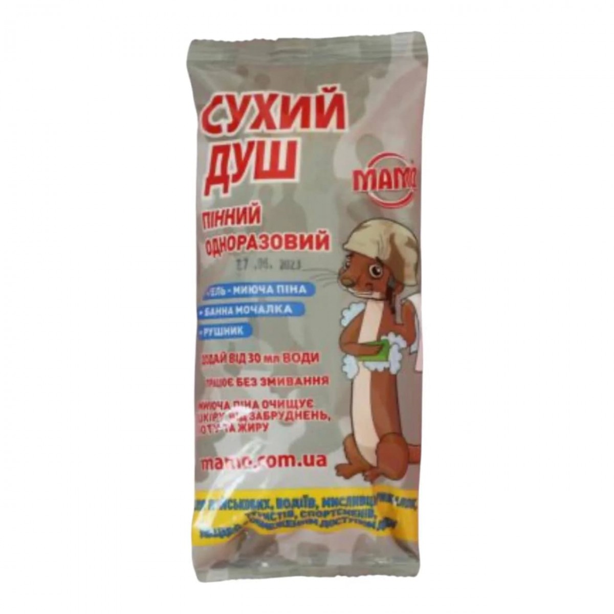 Сухой пенный душ одноразовый МАМО – 2 больших полотенца из спанлейса 40×50 см + пенный спонж из Испании с 4 г дерматогеля