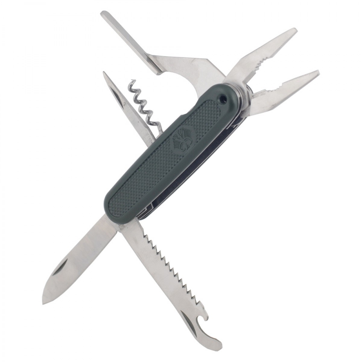 Не большой компактный мультитул от немецкой компании Милтек, получивший свое название из-за накладок на ручку по цвету и форме очень напоминающую нож Бундесвера, а так же встроенных инструментов идущих в оригинальном ноже. Лезвие имеет заточку по типу плейн. И фиксируется в открытом положении за счет замка Liner Lock - который по праву считается одним из самых простых и надежных замков.