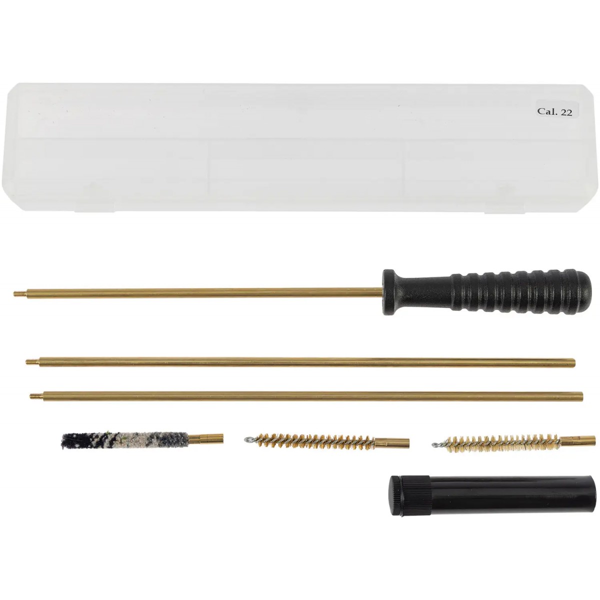 Набор для чистки MegaLine для нарезного оружия калибра 22 (.223). В комплект входят: складной латунный шомпол (3 секции), латунный ершик, нейлоновый ершик, пуховка, масленка. Набор поставляется в удобной пластиковой коробке.