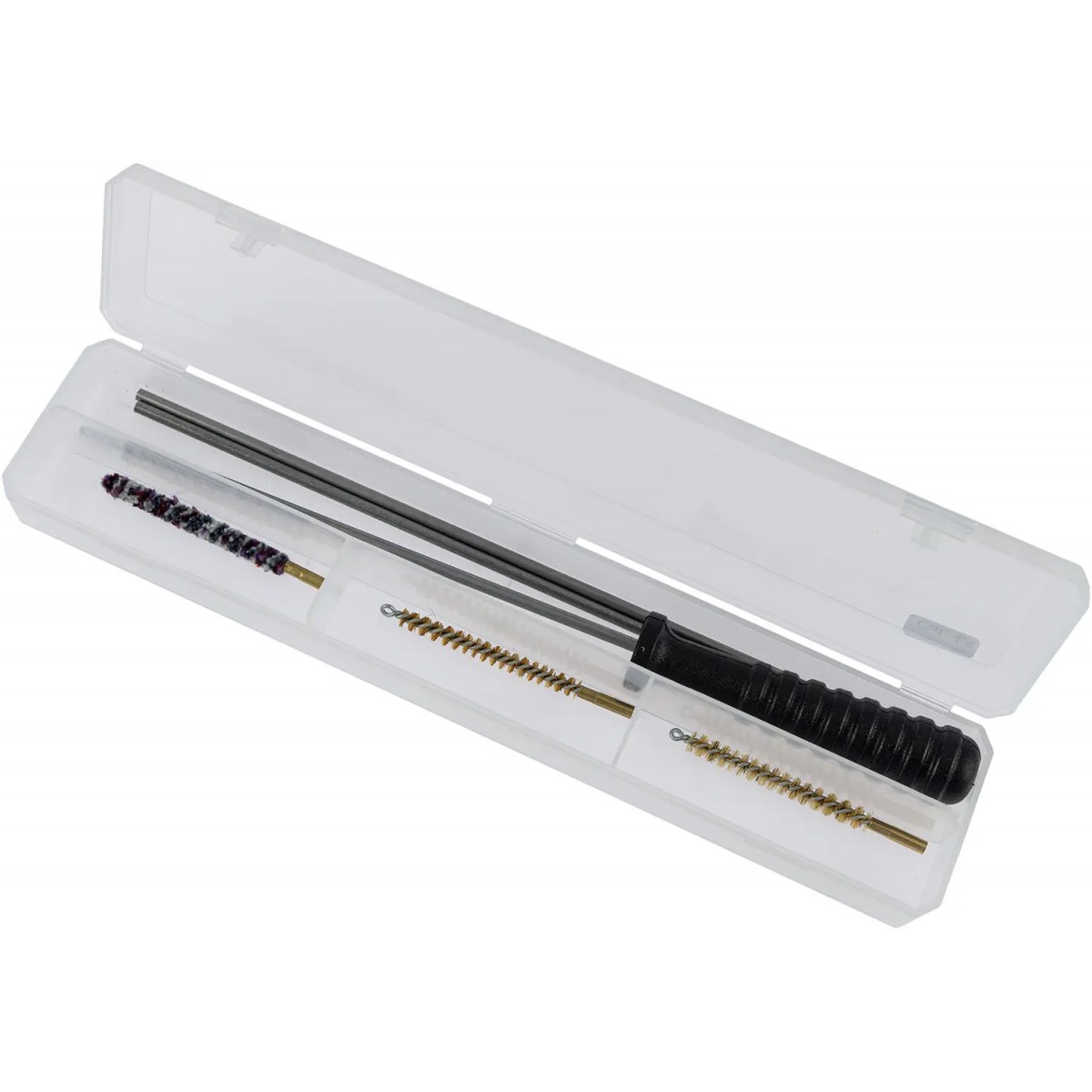 Набор для чистки MegaLine для пневматического оружия кал. 4,5 мм. В комплект входят: складной стальной шомпол (3 секции), латунный ершик, нейлоновый ершик, пуховка. Набор поставляется в удобной пластиковой коробке.