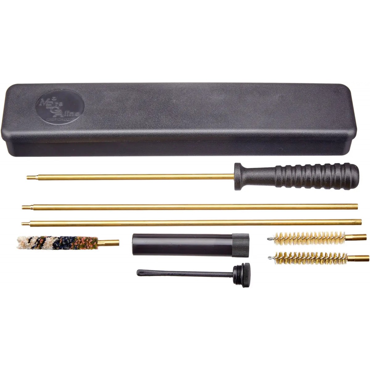 Набор Megaline для чистки нарезного огнестрельного оружия в пластиковом кейсе. 1 разборной шомпол, 1 латунный ерш, 1 ерш из нейлона, 1 пуховка, 1 емкость для нейтрального масла.