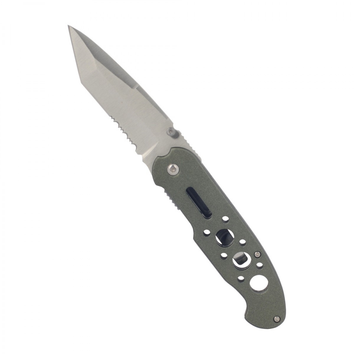 Отличный складной нож от немецкой компании Милтек, получивший свое название из-за формы лезвия. Благодаря съемному, переставному шпеньку модель обеспечивает комфортное открывание ножа как для правши, так и для левши в одно касание. Лезвие имеет комбинированную заточку - танто + серейтор. И фиксируется в открытом положении за счет замка Liner Lock - который по праву считается одним из самых простых и надежных замков. Для более комфортного ношения в кармане, на поясе или снаряжении дизайнеры компании предусмотрели съемную клипсу.