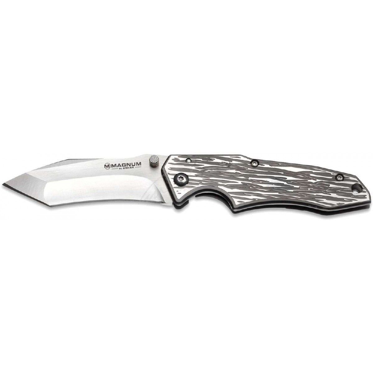 Компактный складной нож Boker Magnum Hotel Charlie из нержавеющей стали отличается необычной геометрией клинка и своеобразной текстурой рукояти, которые придают его внешнему виду особую неповторимость.