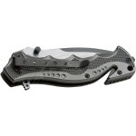 Тактический складной нож SWAT Res-Q предназначен для выживания в экстремальных условиях. Он оснащен всем необходимым: стропорезом, стеклобоем, клинком из нержавеющей стали 440 с полусеррейторной режущей кромкой и шпеньком, надежным фиксирующим механизмом – лайнерлок, карманной клипсой и отверстием под темляк. Алюминиевая рукоять имеет удобные подпальцевые выемки для более уверенного хвата. Тип клинка – drop point.