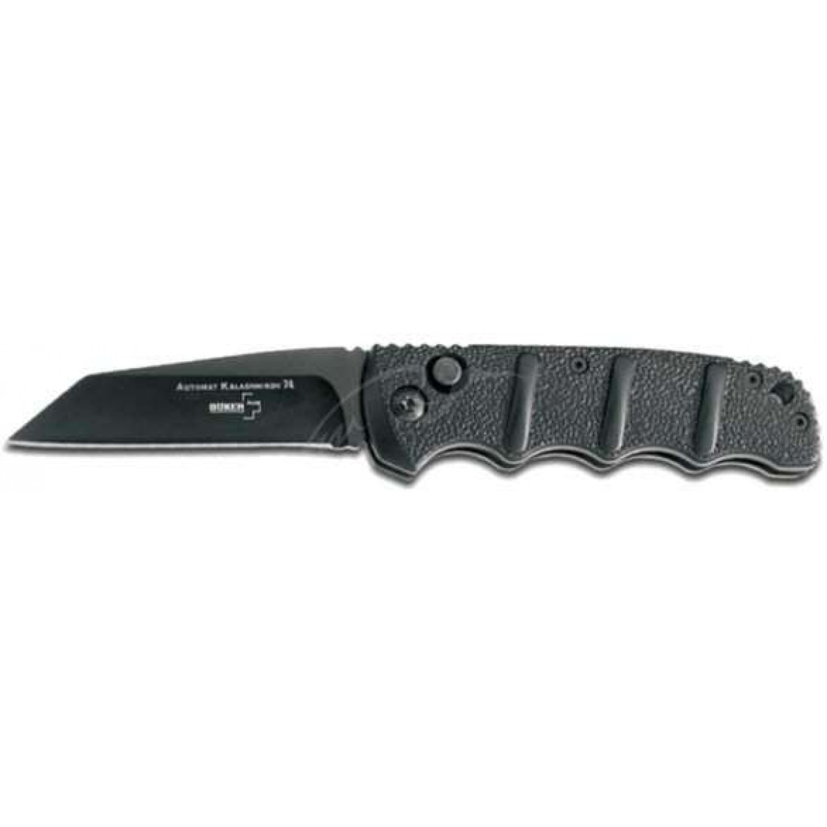 Серия ножей AK посвящена самому популярному оружию в мире - легендарному Автомату Калашникова. Все ножи, носящие имя Калашникова, официально лицензированы.Нож AKS 74 гармонично объединил в себе черты штыкового ножа автомата АК-74 (в часности рукоятку) и оригинальный клинок копьеподобной формы. Такое сочетание обеспечивает одновременно высокие показатели реза, а также надежность и комфорт при удержании. На рукоятку нанесены насечки и подпальцевые выемки для дополнительного фиксации ножа в руке. Но основной "изюминкой" ножа является подпружиненный клинок, который автоматически выдвигается при нажатии кнопки на рукоятке.