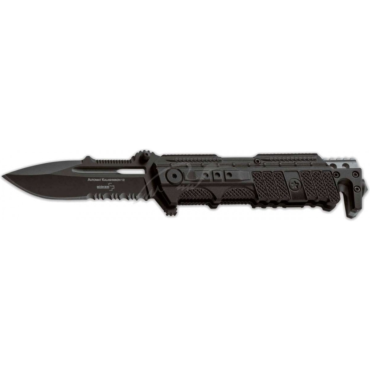 Серия ножей AK посвящена самому популярному оружию в мире - легендарному Автомату Калашникова. Все ножи, носящие имя Калашникова, официально лицензированы.Boker Plus AK12 – последнее поколение складных ножей в серии «Калашников». Рукоятка с алюминиевыми накладками оснащена стропорезом и съемным стеклобоем. Стальные пластины служат базой для надежного запирающего механизма лайнерлок. У навершия расположены два отверстия для темляка. Клинок формы «spear point» изготовленный из нержавеющей стали 440С, легко открывается при помощи флиппера или шпенька. Клипса в модели не предусмотрена. Нож Boker Plus AK12 комплектуется ножнами из кордуры.