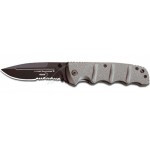Серия ножей AK посвящена самому популярному оружию в мире - легендарному Автомату Калашникова. Все ножи, носящие имя Калашникова, официально лицензированы.За основу для дизайна этой модели был взят штык-нож автомата АК-74 (это хорошо видно по характерным вертикальным выступам на рукоятке). Клинок длинной 8,5 сантиметров сделан из высококачественной японской нержавеющей стали AUS-8, обработка - пескоструйная. Легко открывается одной рукой, благодаря шпеньку у основания клинка. Подпальцевые выемки, выступы и текстура алюминиевой рукояти обеспечивают уверенное удержание ножа в любой ситуации.