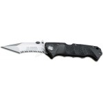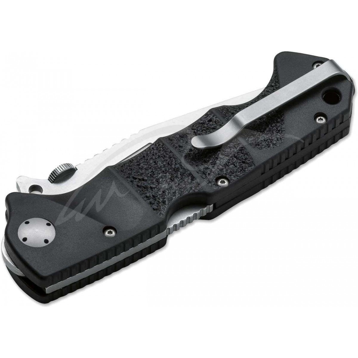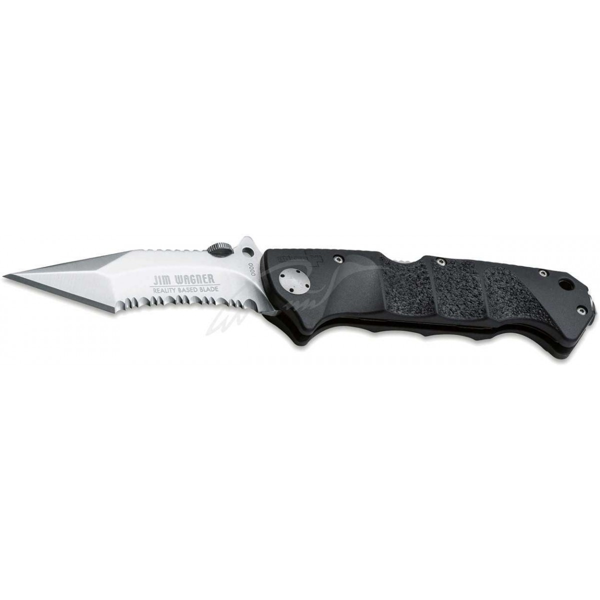 Компания Boker поставила перед Джимом Вагнером, известным экспертом по боевым искусствам, задачу - разработать лучший тактический нож. Результатом его работы стала линейка ножей под названием «Reality Based Blade». Эти ножи объединяют в себе множество различных особенностей, которые в других тактических ножах можно найти только по отдельности!Остриё клинка заимствовано у древнеримского ножа Гладия, режущая часть своими изгибами напоминает малайский кинжал Крис, специальные выемки на клинке, долы, придают ему дополнительную жесткость. Эргономичная рукоять, с глубокими подпальцевыми выемками и шероховатой текстурой, позволяет уверенно держать нож в любой ситуации. В затыльник рукояти можно установить стеклобой, либо насадку, которая будет имитировать выглядывающий из кармана колпачок шариковой ручки. Вместе с клипсой, которая позволяет спрятать нож глубоко в карман, такая насадка делает ношение ножа абсолютно незаметным. Два отверстия под темляк (страховочный ремешок) позволят закрепить его в разных положениях при использовании ножа на высоте, под водой либо в условиях дикой природы. Закрытый нож, в случае самообороны, можно использовать для нанесения болевых точечных ударов. Накладки на рукояти ножа сделаны из прочного материала - нейлона усиленного добавлением стекловолокна (FRN). Дополнительную надёжность обеспечивают стальные пластины под накладками, усиливающие рукоять, и замок «бэк-лок» - намертво запирающий открытый нож.