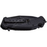 Рукоять выполнена из усиленного стекловолокном пластика с прорезиненными вставками для более надежного хвата. Клинок из нержавеющей стали 12С27 фиксируется в открытом положении механизмом лайнерлок.