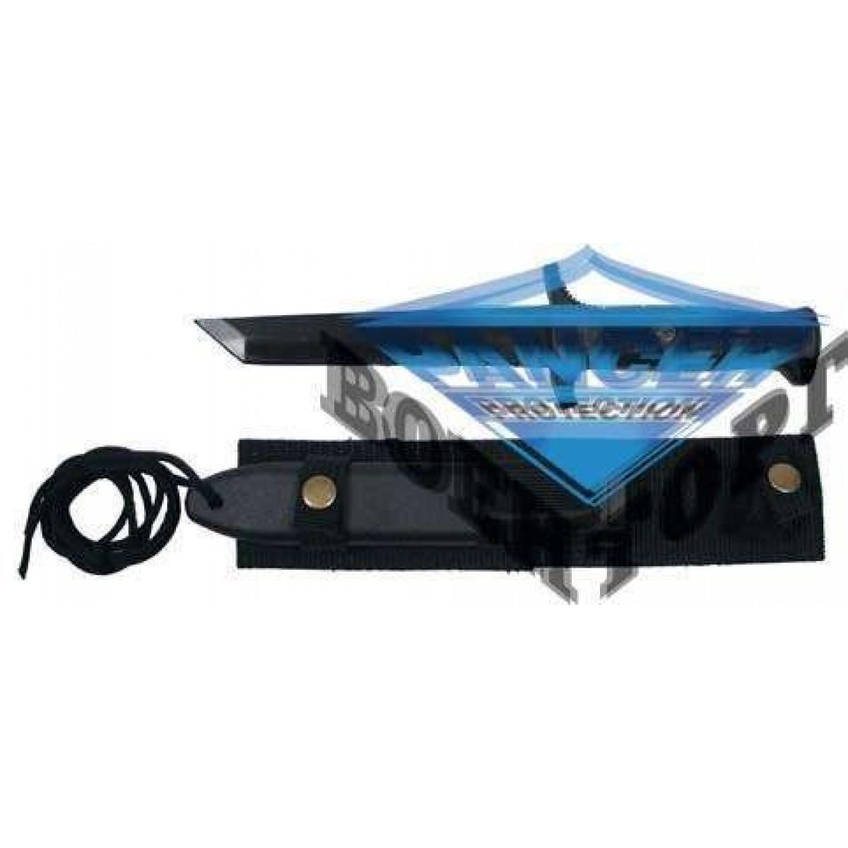 Копия BW боевого ножа 2000 обе стороны Tanto лезвия ( 17 см) почерневшие , частично зазубренный Стекло выключатель на задней рукоятке средства защиты рук стабильной, не скользят Ушко на конце ручки Пластиковая оболочка с небольшим точилка съемное крепление ремня выполнена из нейлона с защелками и липучки дополнительные вспомогательные контуры Длина : около 30 см