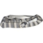Рукоять титановая, благодаря характерной "гребешковой" форме очень удобная. Замок Frame Lock.