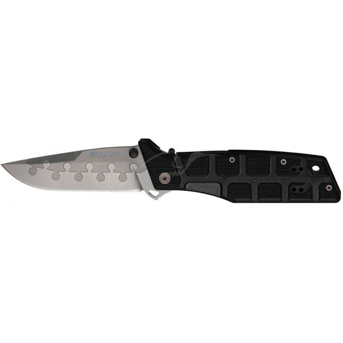 Новая инновационная разработка компании Fox, суть которой состоит в использовании двух независимых материалов в клинке, наглядно представлена в ноже Nighthawk. Сама режущая кромка изготовлена из стали N690Co кобальт ванадий, а торцовая часть – из титана 5-го класса. В результате имеем нож с футуристическим дизайном и отличными показателями реза. Благодаря австрийской стали N690Co кобальт ванадий, клинок чрезвычайно прочен и устойчив к кислотной и солевой коррозии, а благодаря титану – гибок. К тому же титан делает нож на 20% легче, что особо важно для тактических задач. На обухе клинка есть насечки для большого пальца, что обеспечивает надежное удержание. Рукоятка же сделана в так называемом «чешуйчатом стиле». Накладки сделаны из текстурированного стеклотекстолита G-10, а потому нож надежно лежит в руке.