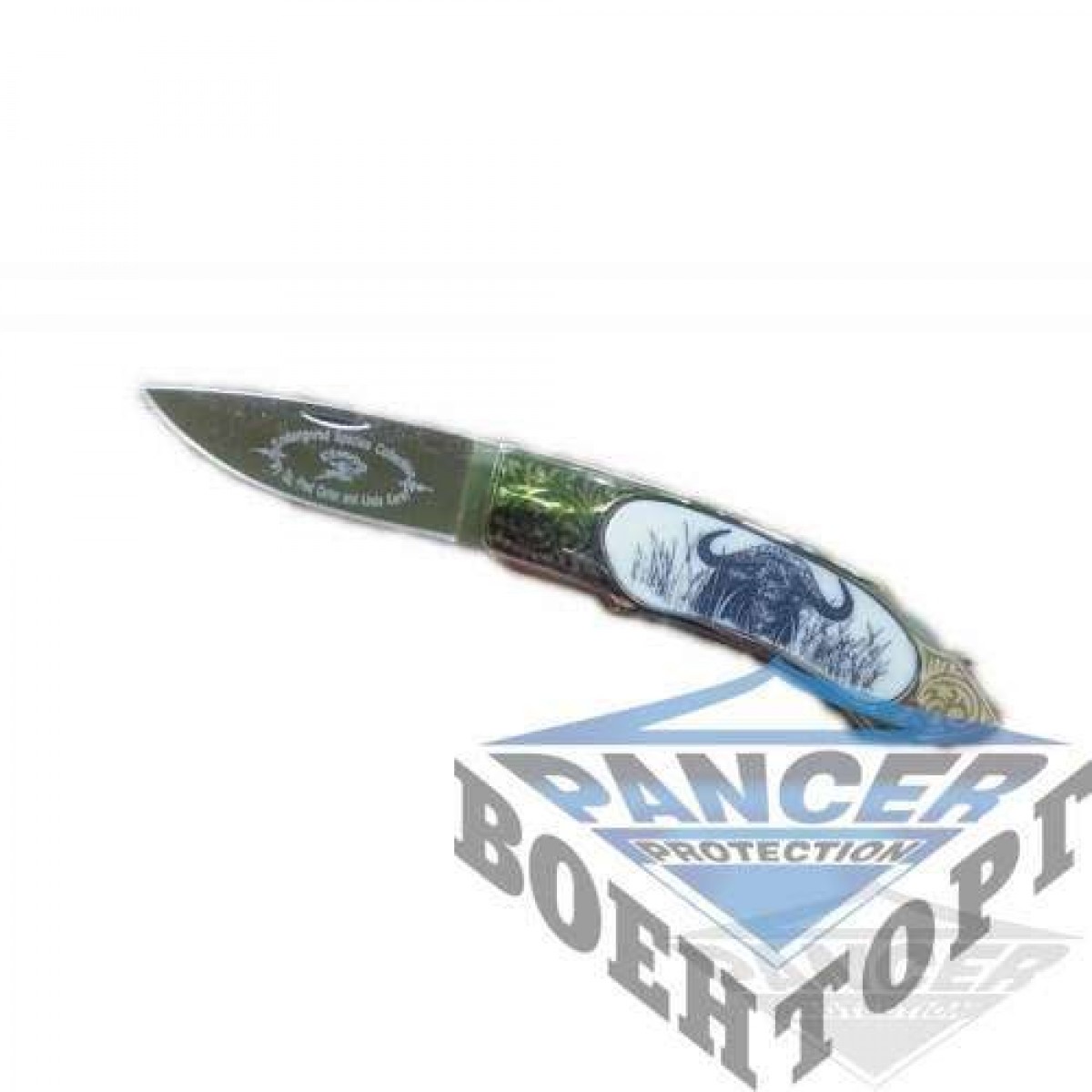 Материал рукояти: сталь с орнаментом из 24-каратного золота со вставкой с гравировкой зверей, занесенных в Красную книгу. Вставка с лазерной гравировкой животных на камне (A - Носорог, B - Слон, С - Лев, D - Тигр, E - Гепард, F - Орел, G - Леопард, H - Буйвол) Характеристики: - Лезвие: полированное - Тип Ножи складные - Общая длина (мм) 180 мм - Материал рукояти сталь с орнаментом из 24-каратного золота - Материал клинка Сталь 420 серии - Длина клинка 77 мм