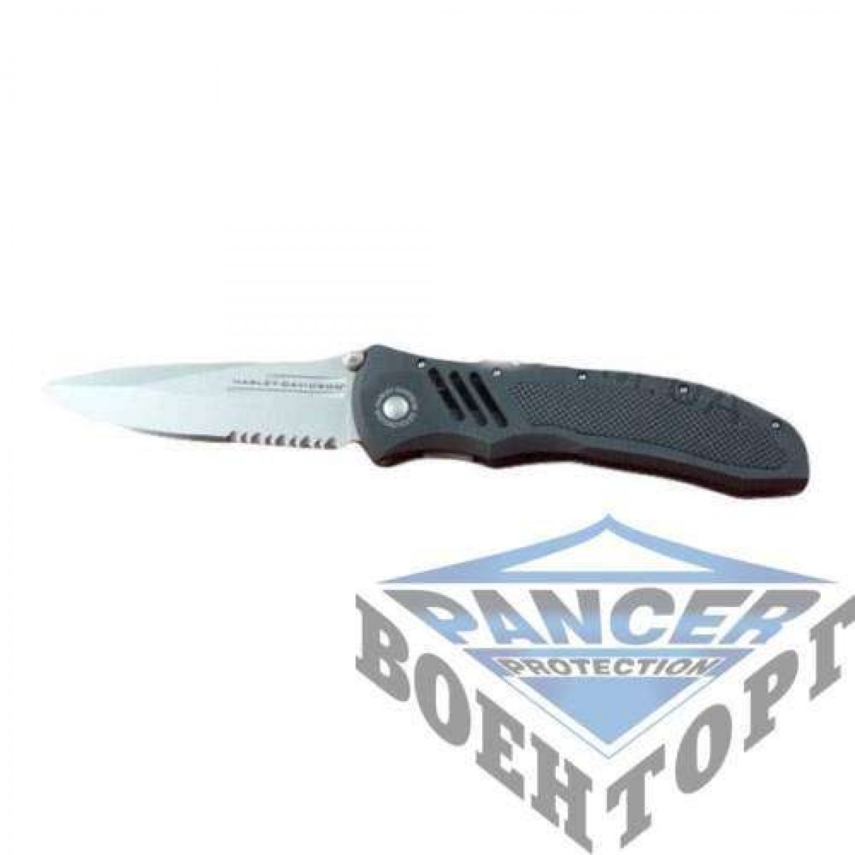 Еще один нож из эксклюзивной серии "Harley Davidson". Эта модель представлена в 2-х цветовых вариациях: белой и черной. Нож GIGAND HD-43 выполнен в сдержанном стиле, с комбинированным лезвием: прямым и сирейторным. Отсутствие люфтов обеспечивает замок Liner-lock. Благодаря своим размерам, рукоять останется удобной и для обладателя не маленькой ладони, что не маловажно при выборе изделия. Характеристики: - Тип режущей кромки: Гладкое лезвие - Тип замка: Liner Lock - Марка стали клинка: AUS-8 - Материал рукояти: Металл с прорезиненной вставкой - Длина лезвия: 95 мм - Общая длина: 230 мм - Чехол/ножны: Нет - Твердость клинка, HRC: 56-58