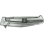Рукоятка выполнена из нержавеющей стали. Фигурные канавки обеспечивают, помимо дополнительной эстетики, надежное удержание ножа.