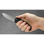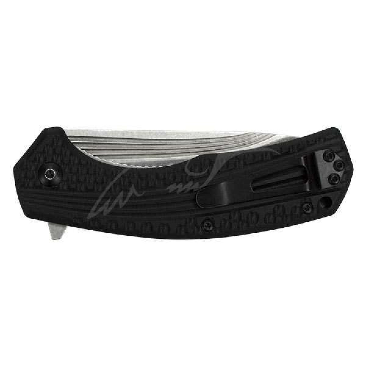 Клинок типа drop point изготовлен из стали 4Cr14, имеет покрытие «стоунвош» и надежно фиксируется в открытом положении механизмом лайнерлок. Текстурированная рукоять выполнена из стеклонаполненного нейлона. Нож приводится в рабочее состояние при помощи флиппера (плавника) и системы SpeedSаfe®.