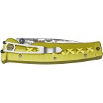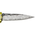 Клинок изготовлен из дамасской стали с сердцевиной из VG-10, на обухе имеется шпенек для быстрого открывания ножа одной рукой. Рукоять выполнена из анодированного алюминия, для более удобного хвата предусмотрена глубокая подпальцевая выемка. Механизм лайнерлок надежно фиксирует нож в открытом положении, а система тефлоновых шайб гарантирует плавное извлечение клинка. Модель оснащена карманной клипсой и отверстием для крепления темляка.