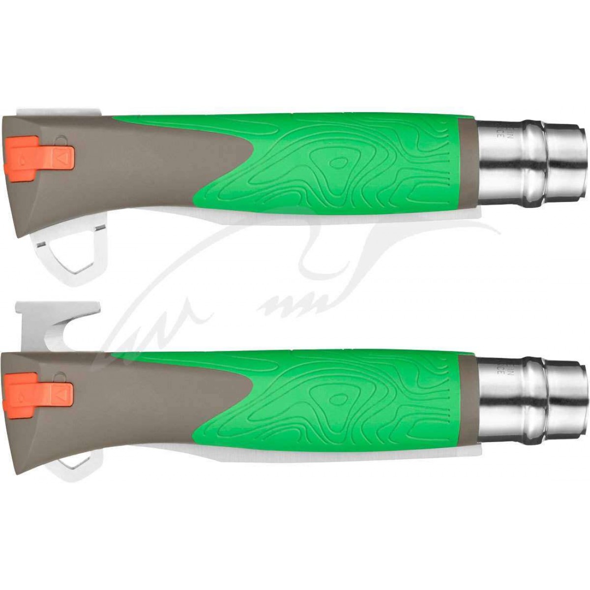 Рукояти ножей Opinel №12 Explore выполнены из стеклопластика и окрашены в яркие цвета. В саму же рукоять интегрированы: стропорез, крепление для темляка, огниво и сигнальный свисток.