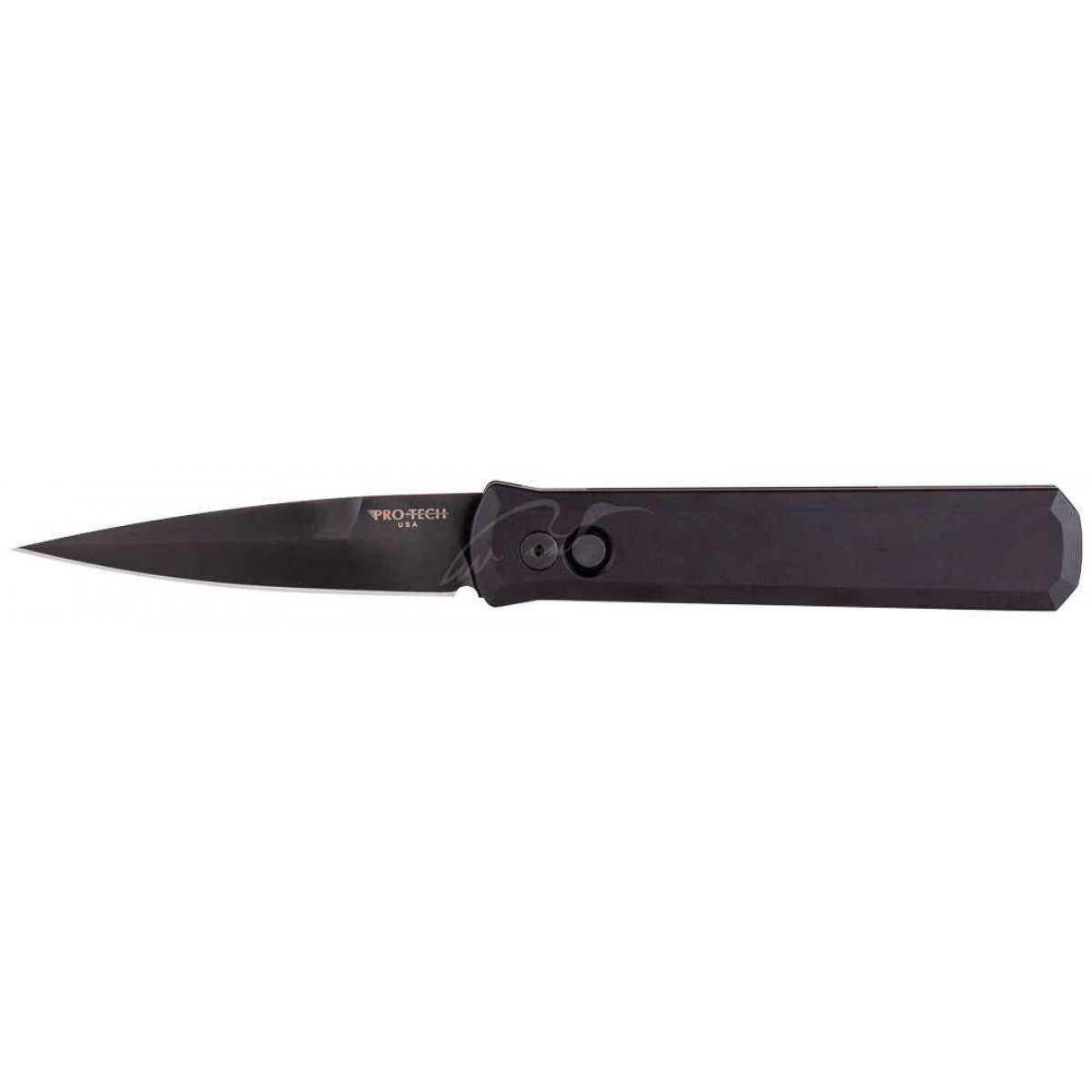 Нож Godfather SWAT Tactical от американской компании Pro-Tech объединил в себе высококачественные материалы и классический дизайн итальянских стилетов. Форма клинка Spear Point стала фирменным знаком компании Pro-Tech. Рукоять оснащена кнопкой выброса клинка, которая утоплена в рукояти, что снижает возможность случайного нажатия в кармане. Основной отличительной чертой всех ножей фирмы ProTech является исключительная точность сборки и подгонки деталей.Рукоять выполнена из анодированного алюминия.