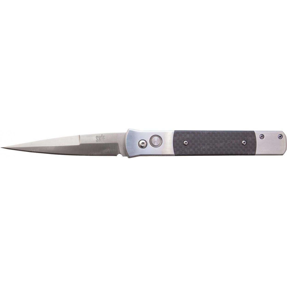 Серия SKIF 483 - это абсолютно новая линейка ножей с автоматическим боковым выбросом клинка. Благодаря использованию углеродистого волокна и стали 440С прекрасно приспособлены как в качестве городского так и походного ножа. Серия пока включает два размера клинка, 90 мм и 100 мм. Нож комплектуется кожаным чехлом который можно установить на ремень для удобства ношения.Отзывы о Нож SKIF 483A-1