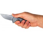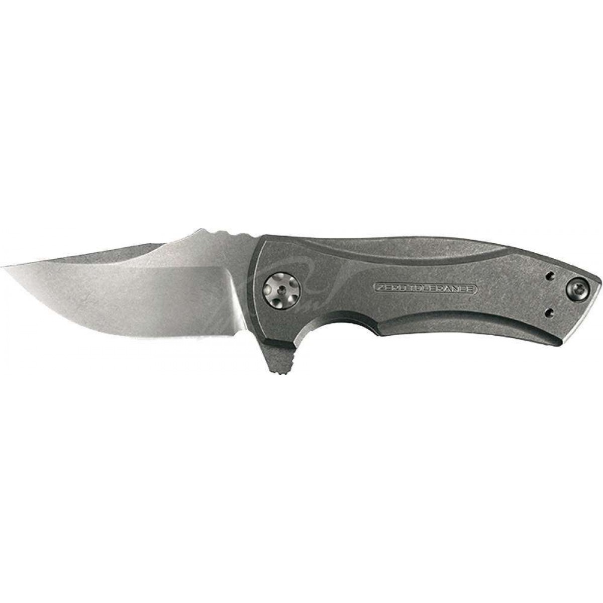 Нож Zero Tolerance 0900 - результат работы мастера Леса Джорджа и Zero Tolerance: компактный, широкий клинок изготовлен из нержавеющей порошковой стали CPM-S35VN, а его поверхность для пущей износоустойчивости обработана по технологии «стоунвош» (stonewash). Таким образом, нож невероятно крепкий, а клинок продолжительное время удерживает заточку. Рукоять выполнена в титане с покрытием стоунвош.Использование фирменной технологии Kershaw - KVT ball-bearing opening – гарантирует легкое и мгновенное открывание ножа при помощи флиппера.