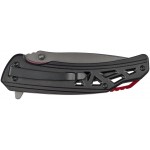 Накладки на рукоять выполнены из алюминиевого сплава, имеются также декоративные вырезы. Присутствует отверстие для темляка, а также стальная клипса для переноски ножа в положении Tip-down.