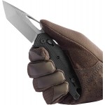 Основное преимущество Boker DTK - клинок, изготовленный из высококачественной порошковой стали CPM MagnaCut, которая отличается превосходным удержанием остроты режущей кромки и высокой износостойкостью. Профиль Tanto Point, спуски на 1\3 от обуха и толщина 3 мм по обуху делают Boker DTK отличным компаньоном для тяжелых задач. Для удобного упора большим пальцем, на обухе размещен ряд насечек.