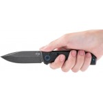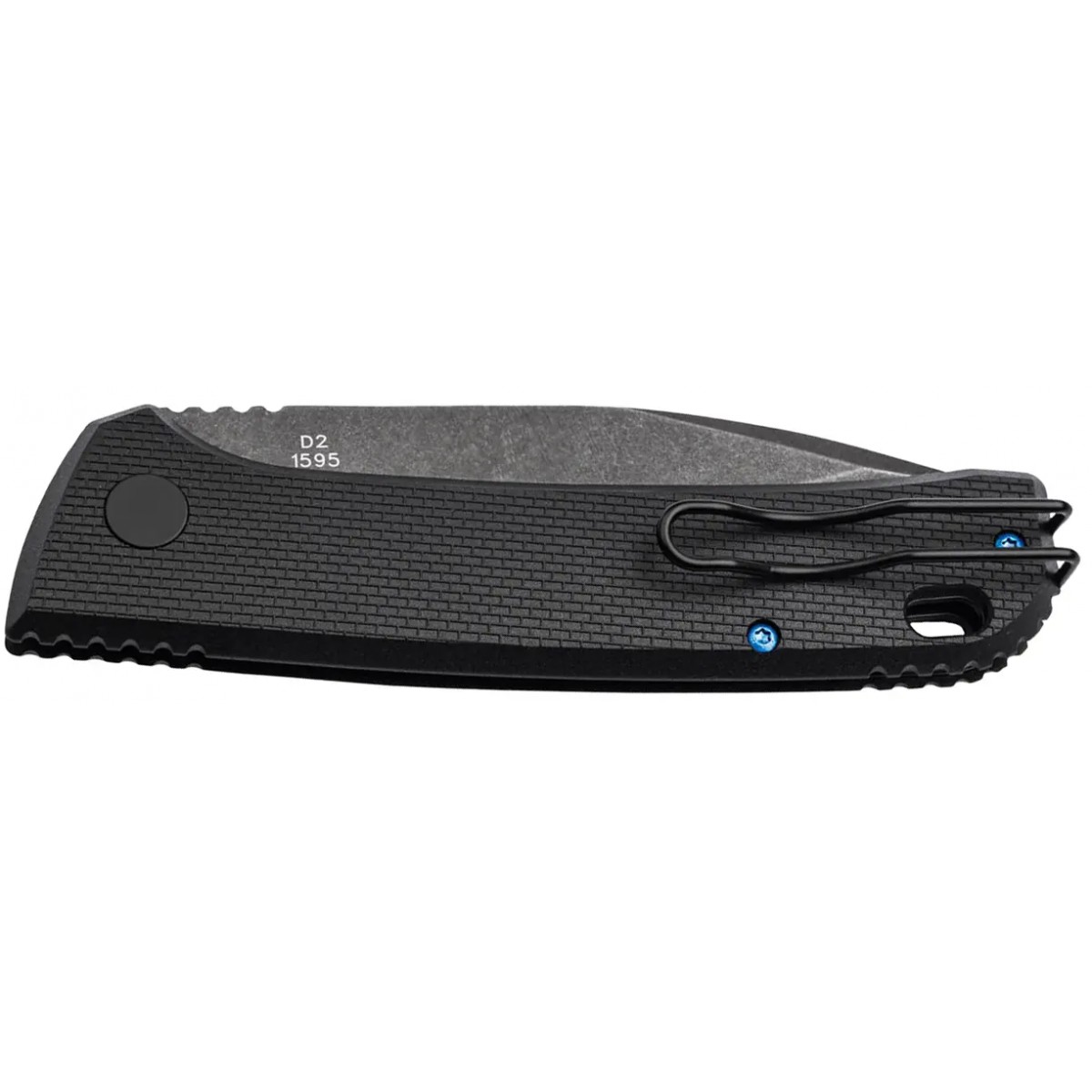 Клинок имеет форму с чертами как Drop Point, так и Spear Point изготовлен из инструментальной стали D2 (59-61 HRC). Автоматическая система позволяет обеспечить мгновенное открытие ножа с помощью кнопки, а для надежности фиксации клинка как в открытом, так и закрытом состоянии имеется механизм блокировки в виде переключателя.