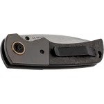 Накладки рукояти выполнены из фактурного мраморированного углеродного волокна и нержавеющей стали. Имеется съемная карманная клипса и отверстие для крепления темляка.